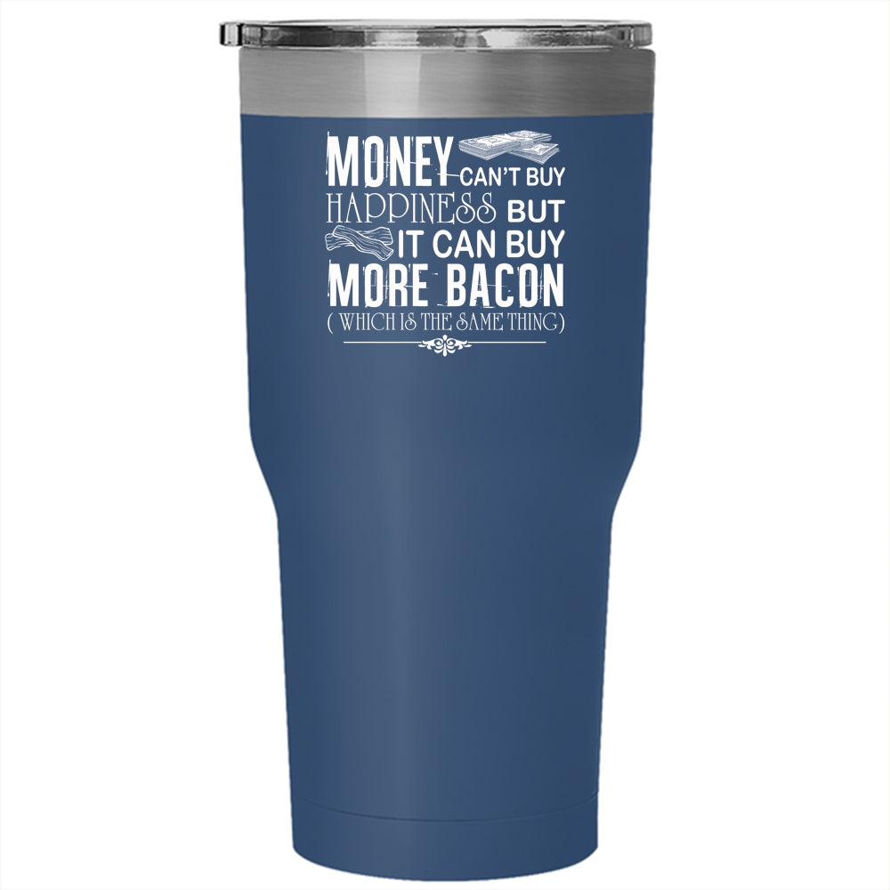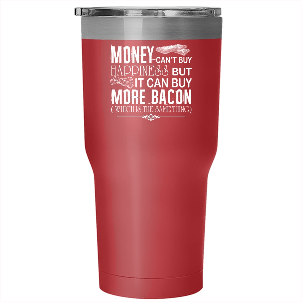 Money Can't Buy Happiness Tumbler 30 oz Stainless Steel, It Can Buy More Bacon Travel Mug
