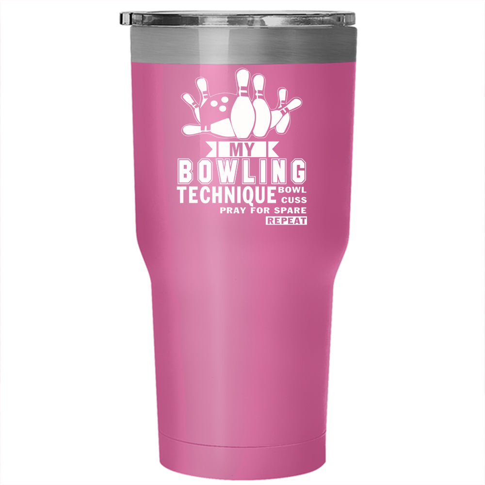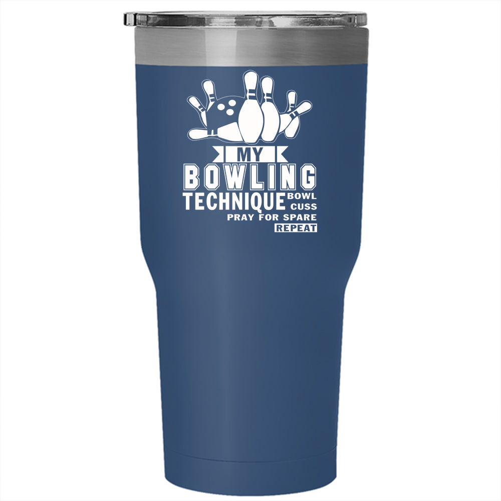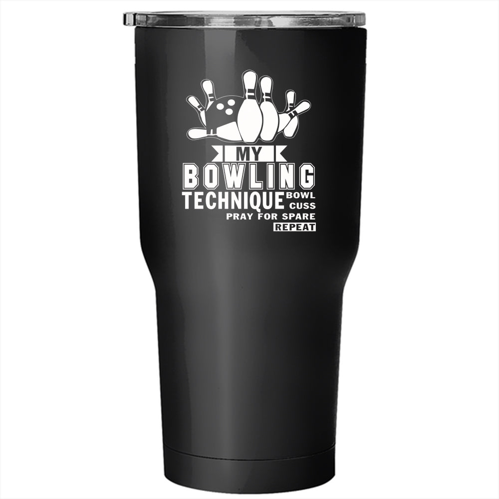 My Bowling Technique Tumbler 30 oz Stainless Steel, Funny Bowling Travel Mug