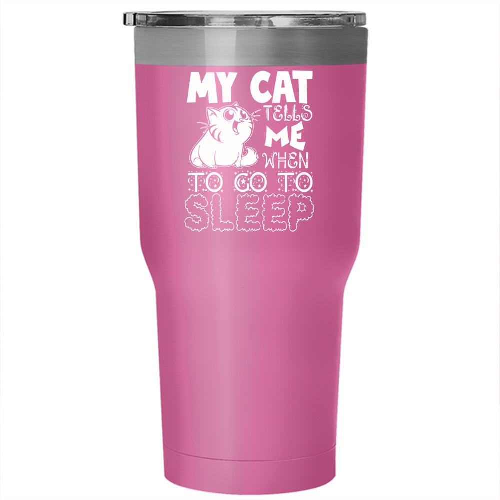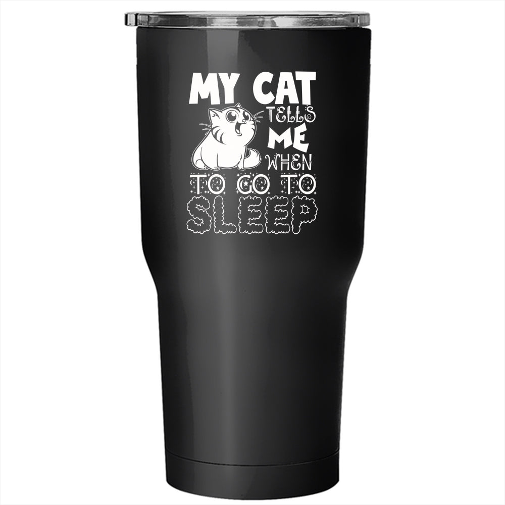 My Cat Tells Me When To Go To Sleep Tumbler 30 oz Stainless Steel, Cute Cats Travel Mug