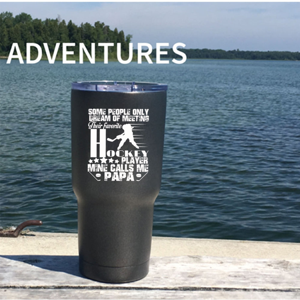 My Favorite Hockey Player Calls Me Papa Tumbler 30 oz Stainless Steel, Cool Papa Travel Mug