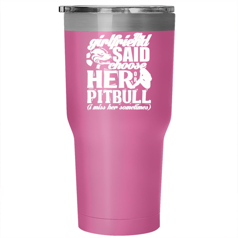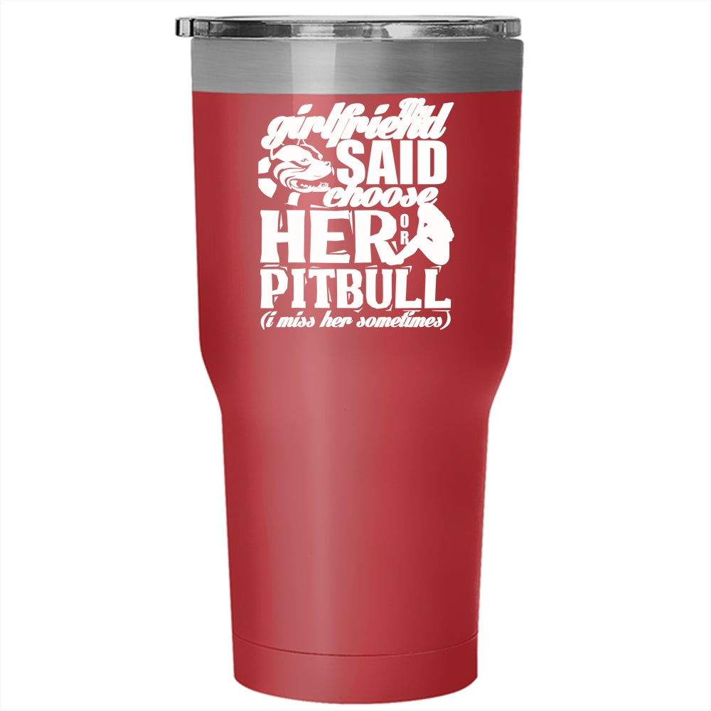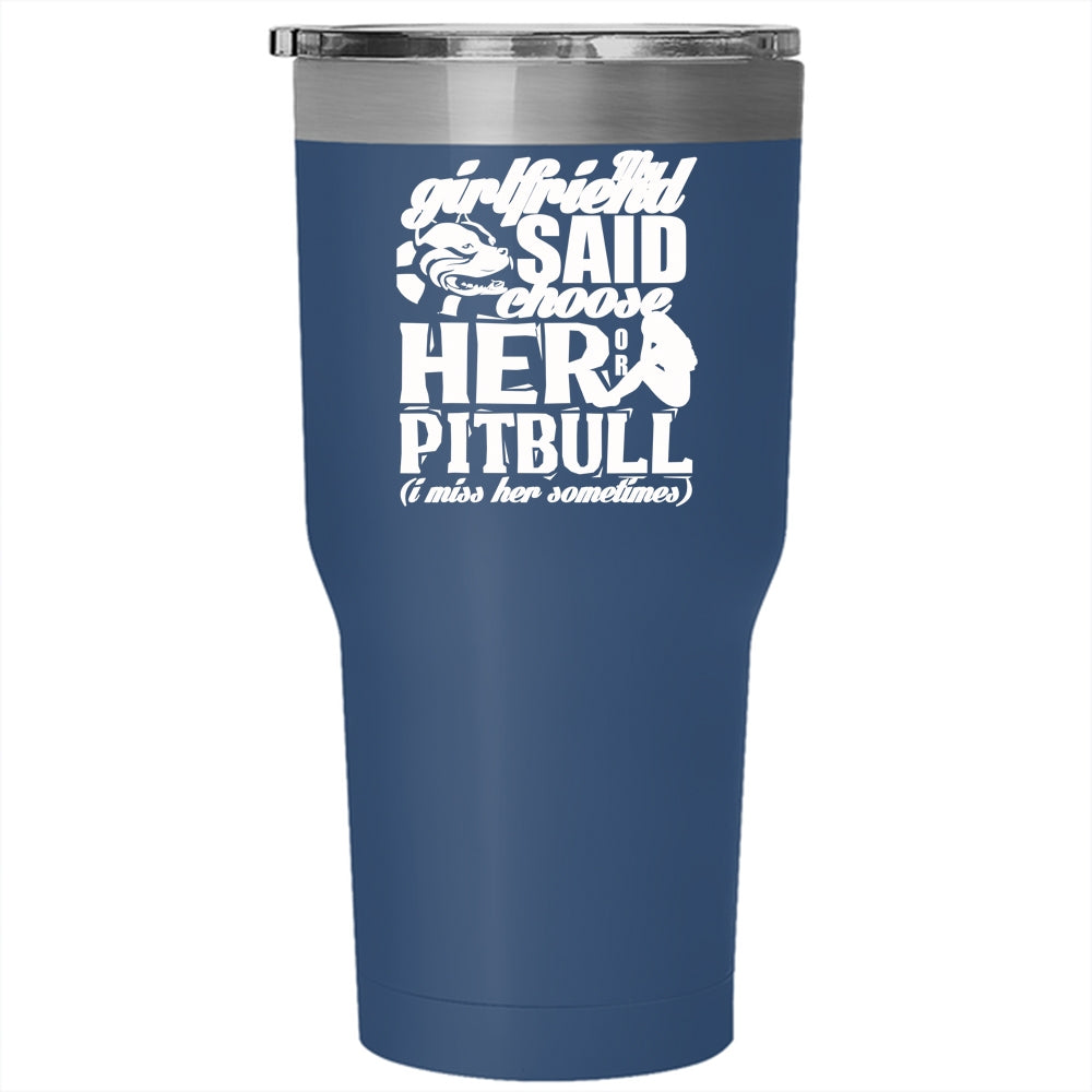 My Girlfriend Said Choose Her Or Pitbull Tumbler 30 oz Stainless Steel, Funny Boyfriend Travel Mug