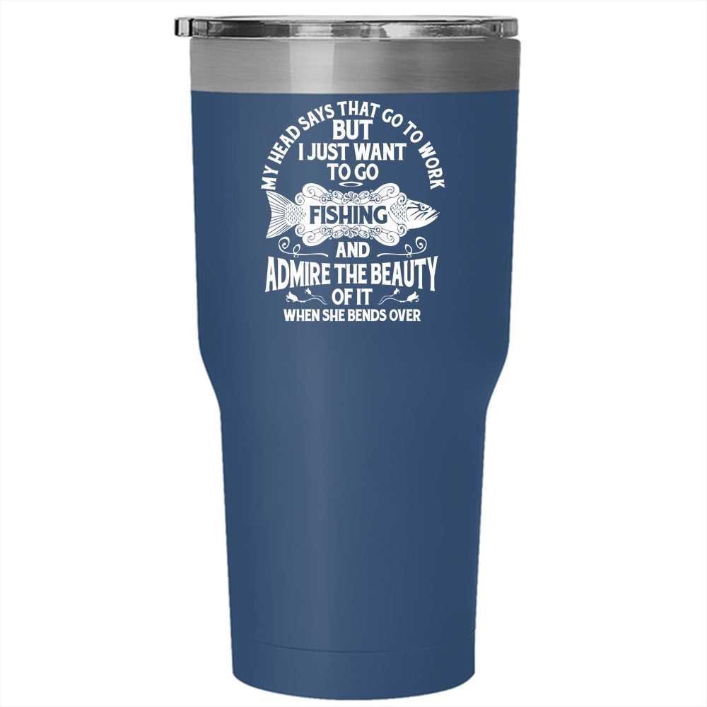 My Head Says That Go To Work Tumbler 30 oz Stainless Steel, I Just Want To Go Fishing Travel Mug