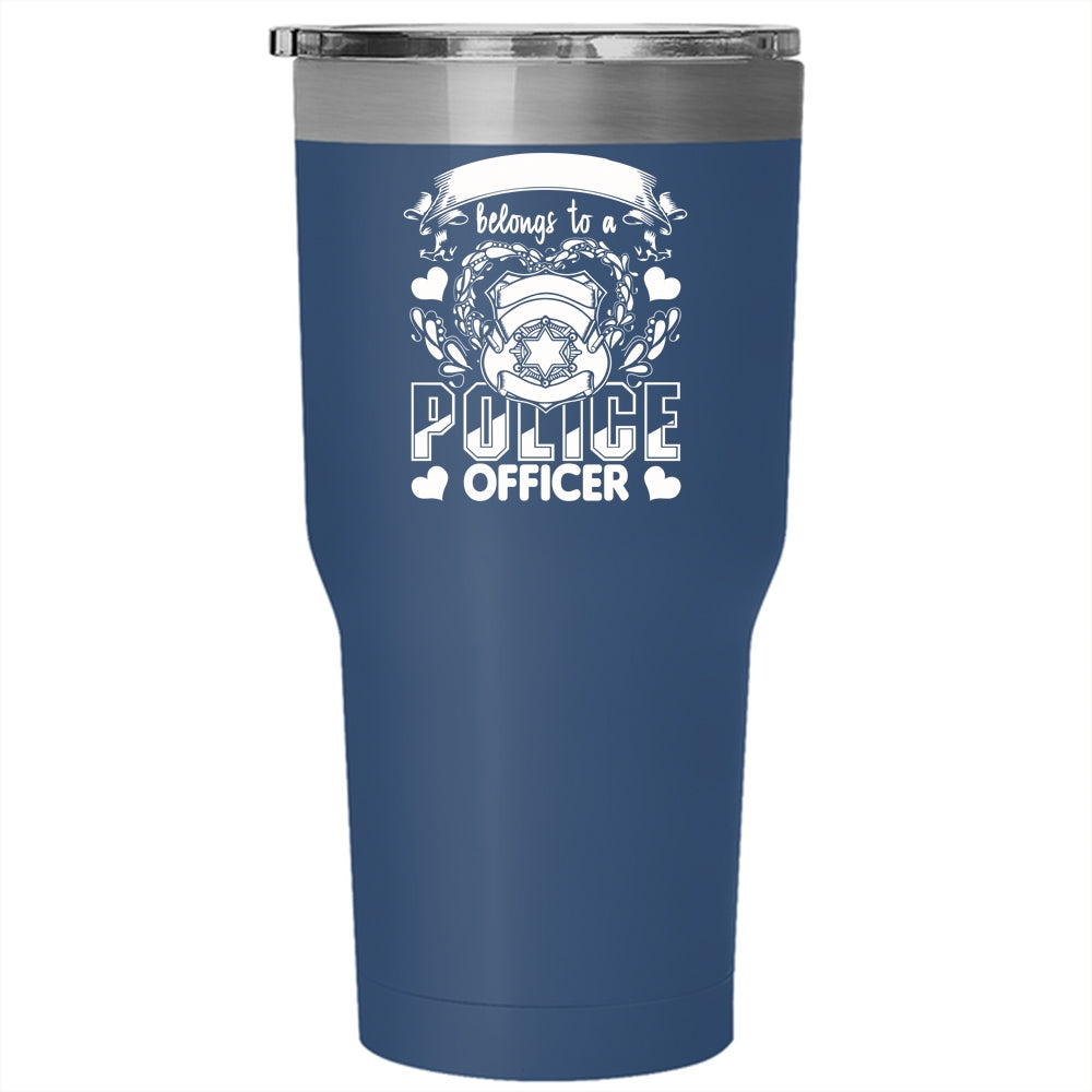 My Heart Belongs To A Police Officer Tumbler 30 oz Stainless Steel, I Love Policeman Travel Mug