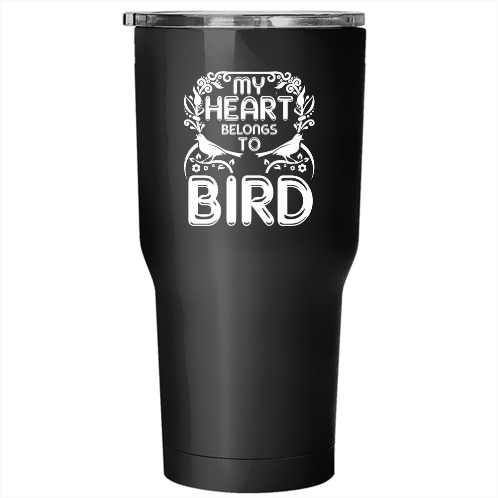 My Heart Belongs To Bird Tumbler 30 oz Stainless Steel, Cute Birds Travel Mug