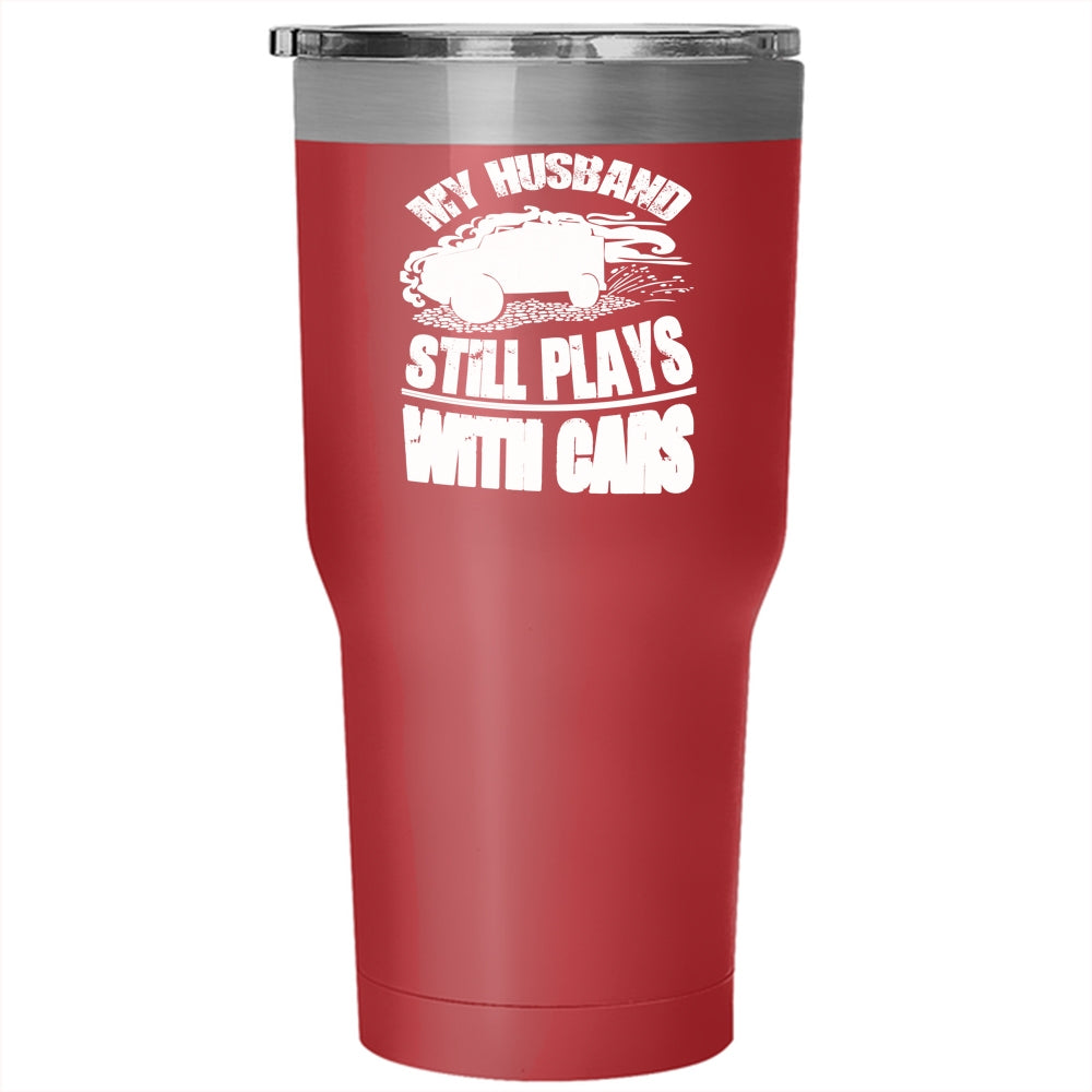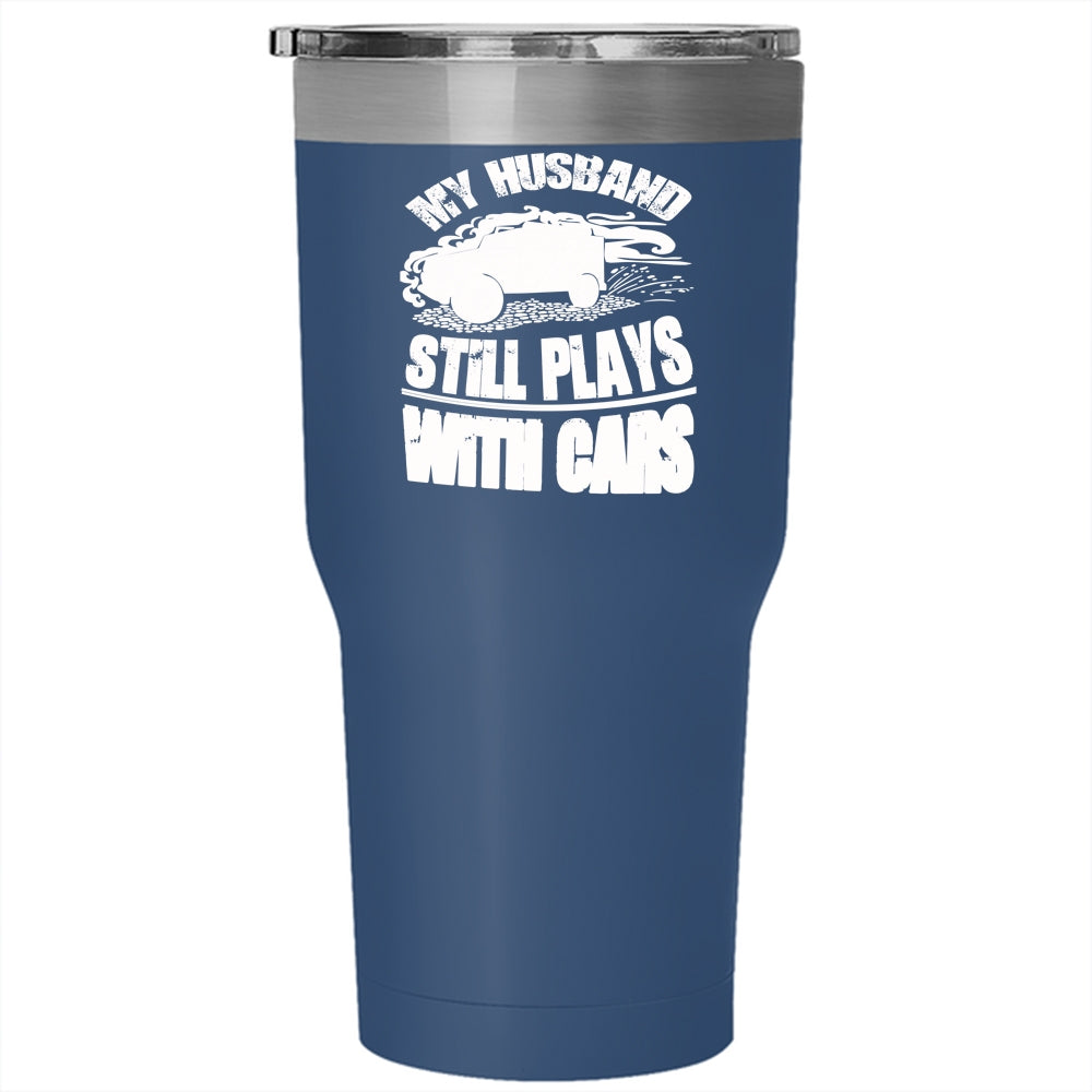 My Husband Still Plays With Cars Tumbler 30 oz Stainless Steel, Cool Husband Travel Mug