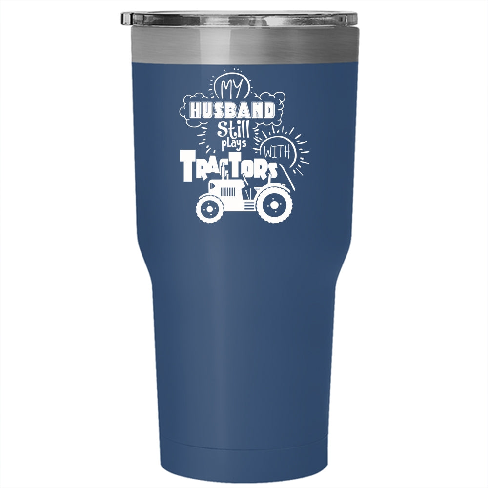 My Husband Still Plays With Tractors Tumbler 30 oz Stainless Steel, Cool Husband Travel Mug