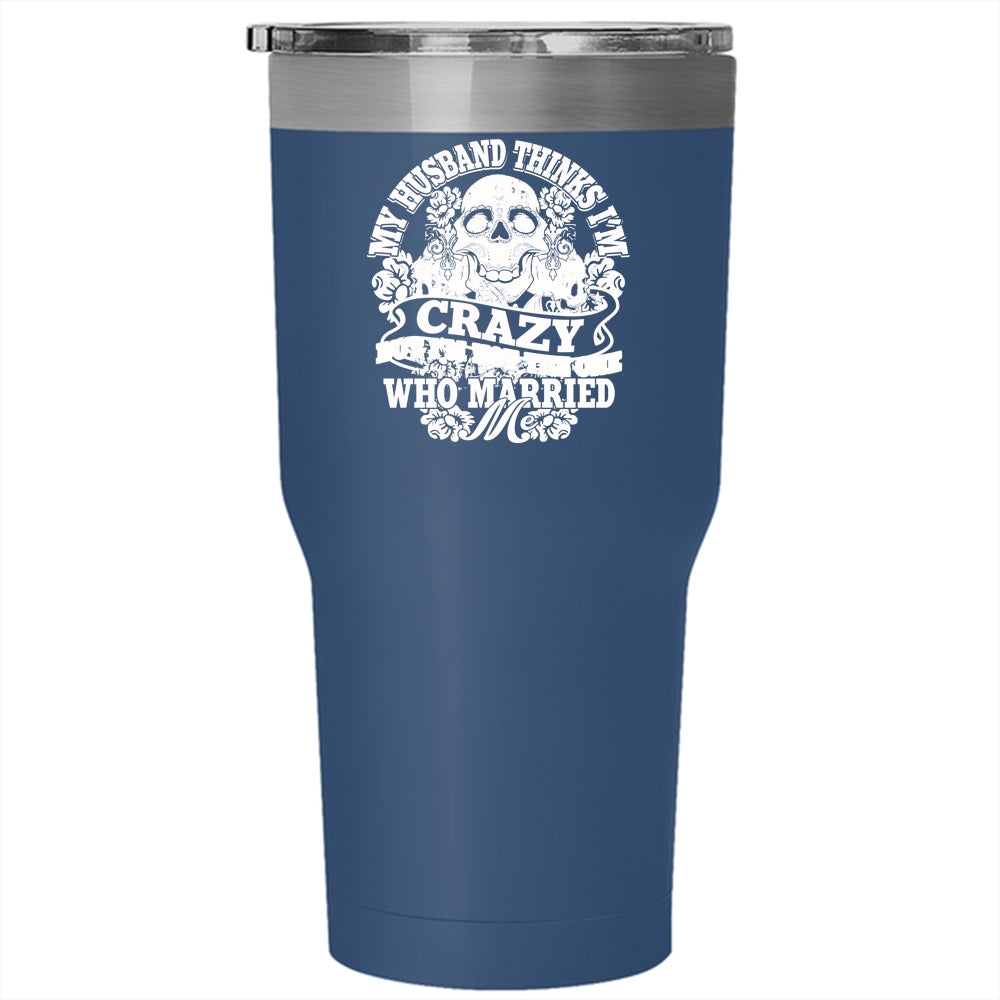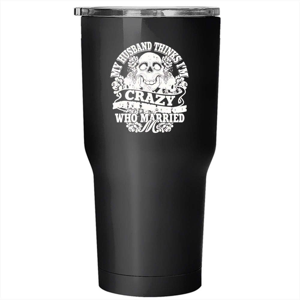 My Husband Thinks I'm Crazy Tumbler 30 oz Stainless Steel, Cute Wife Travel Mug