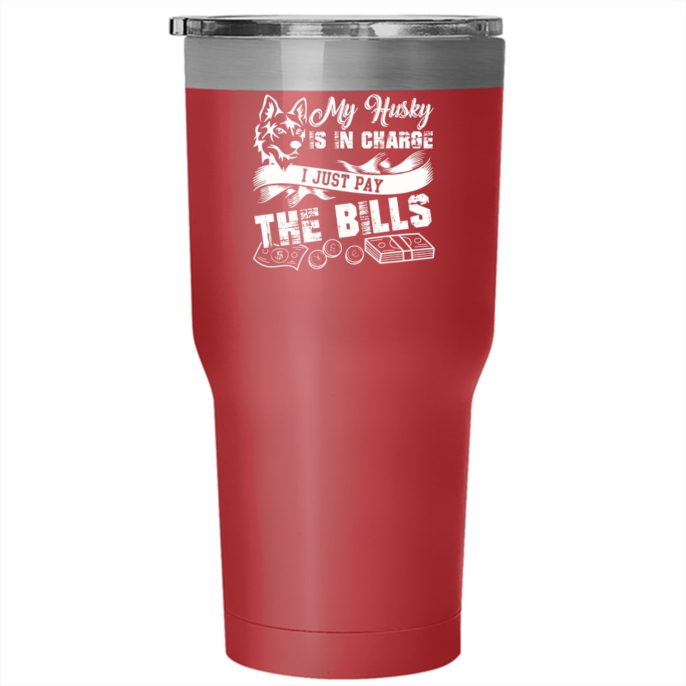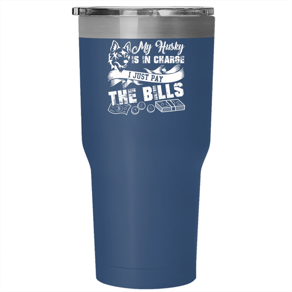 My Husky Is In Charge Tumbler 30 oz Stainless Steel, I Just Pay The Bills Travel Mug