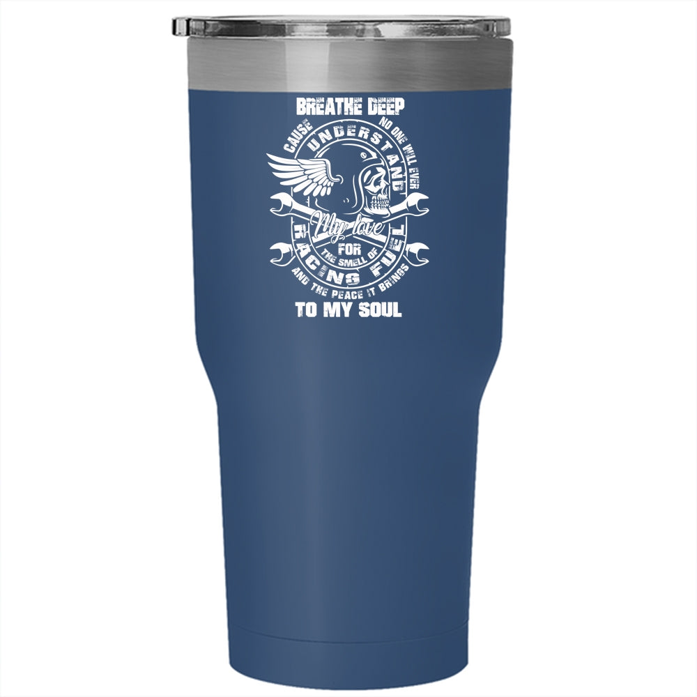 My Love For The Smell Of Racing Tumbler 30 oz Stainless Steel, The Peace It Brings To My Soul Travel Mug