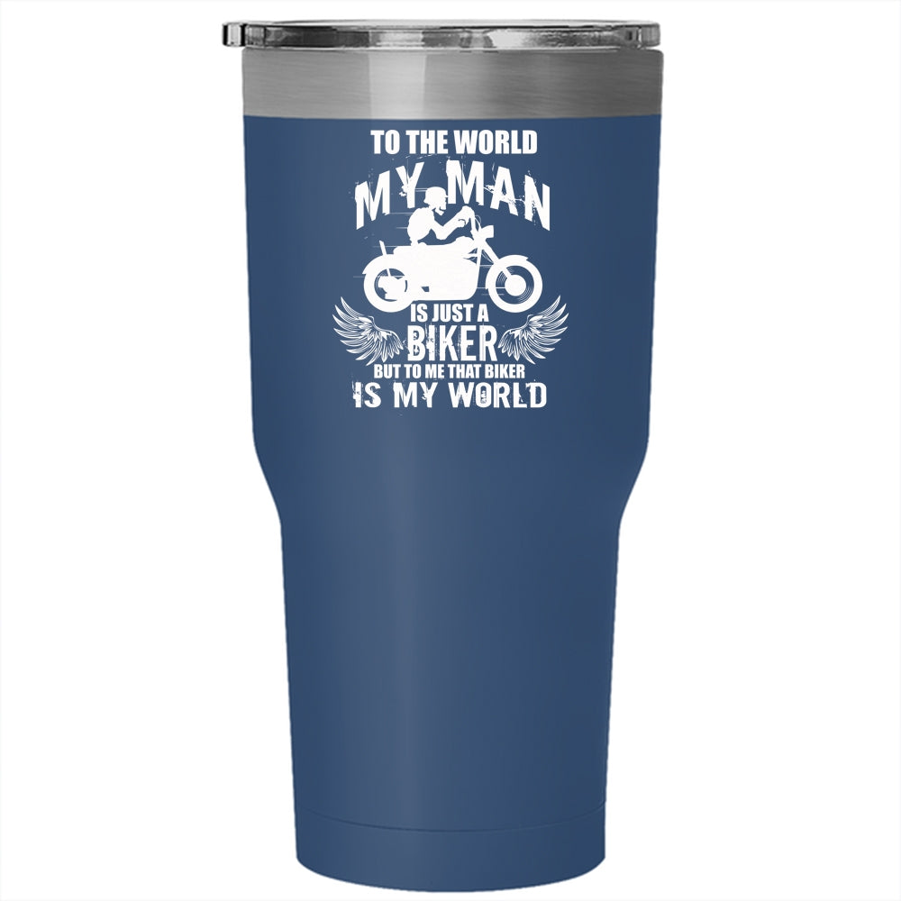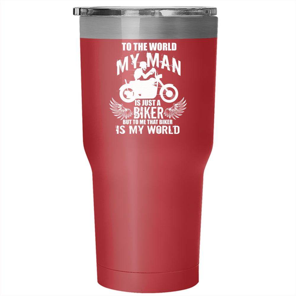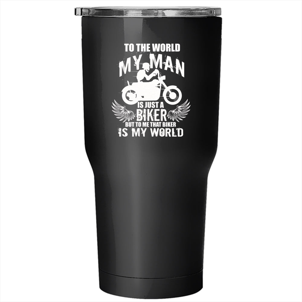 My Man Is Just A Biker Tumbler 30 oz Stainless Steel, That Biker Is My World Travel Mug