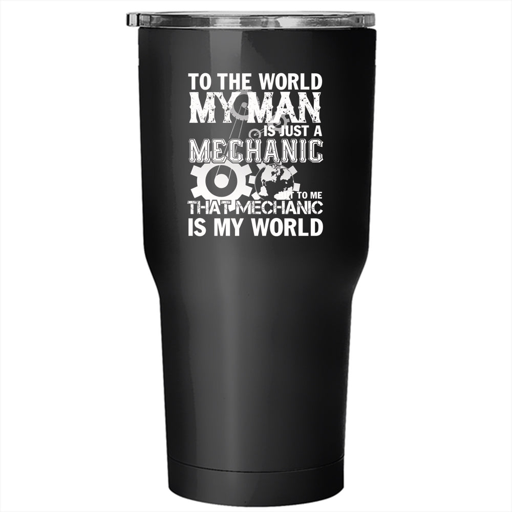My Man Is Just A Mechanic Tumbler 30 oz Stainless Steel, To Me That Mechanic Is My World Travel Mug