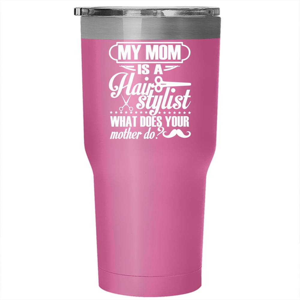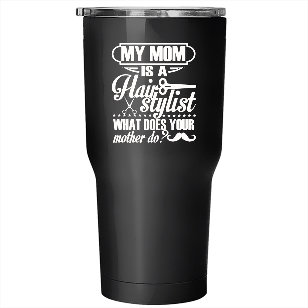 My Mom Is A Hair Stylist Tumbler 30 oz Stainless Steel, What Does You Mother Do Travel Mug