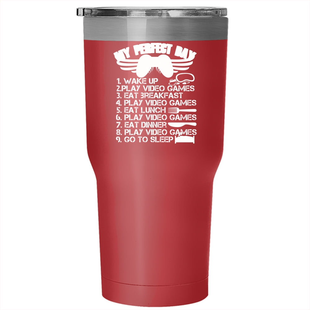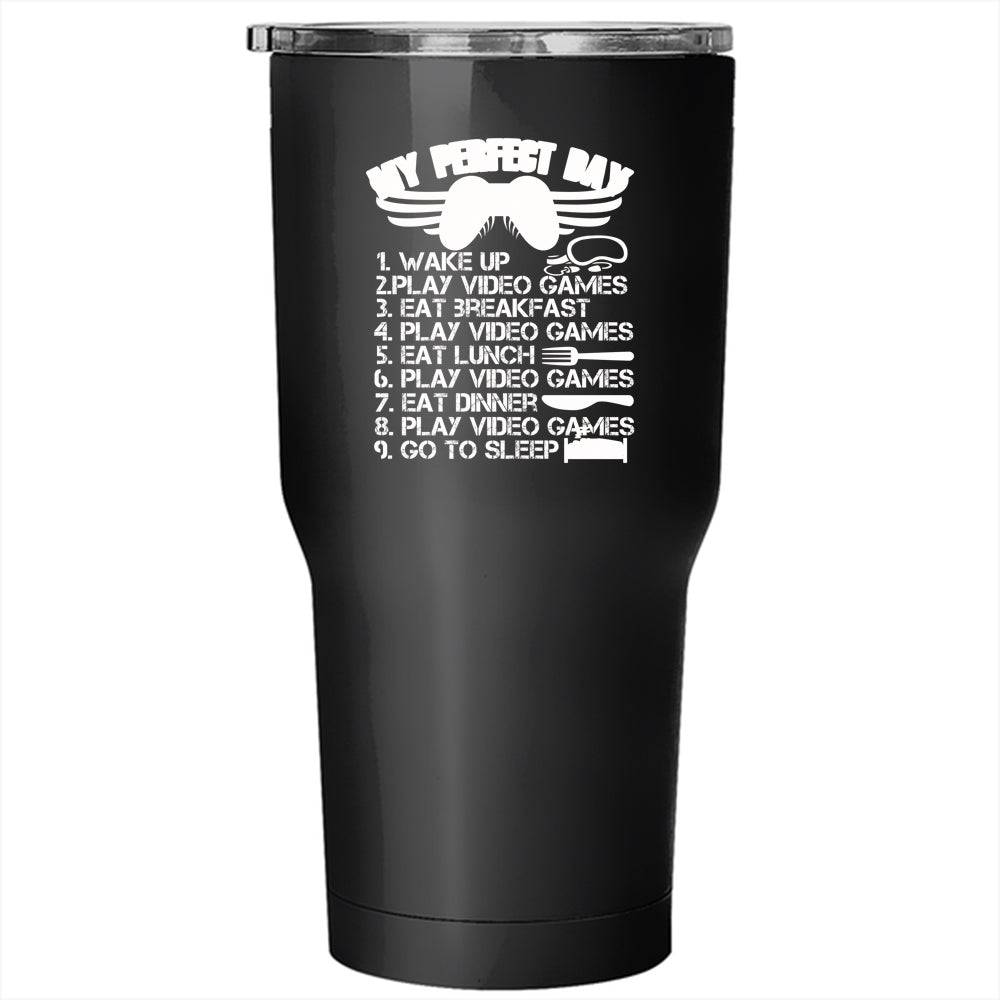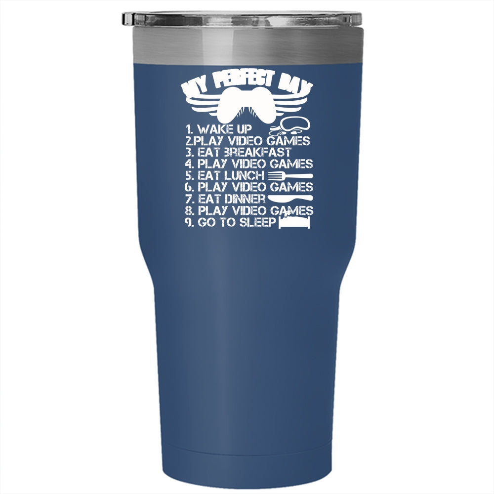 My Perfect Day Tumbler 30 oz Stainless Steel, Play Video Games Travel Mug