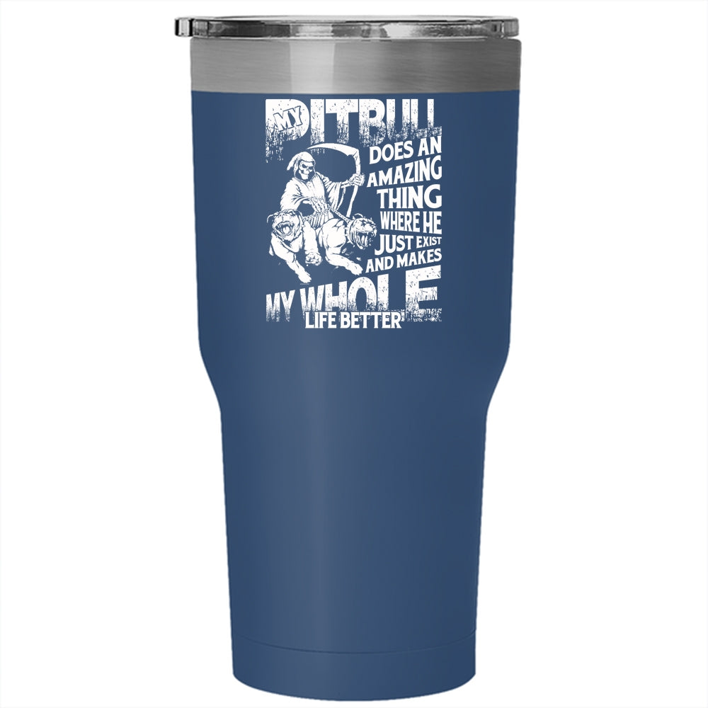 My Pitbull Does An Amazing Thing Tumbler 30 oz Stainless Steel, Cool pit Bulls Travel Mug