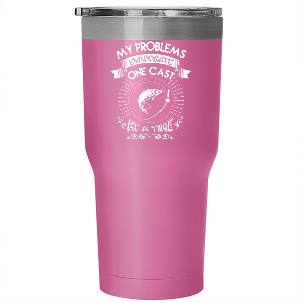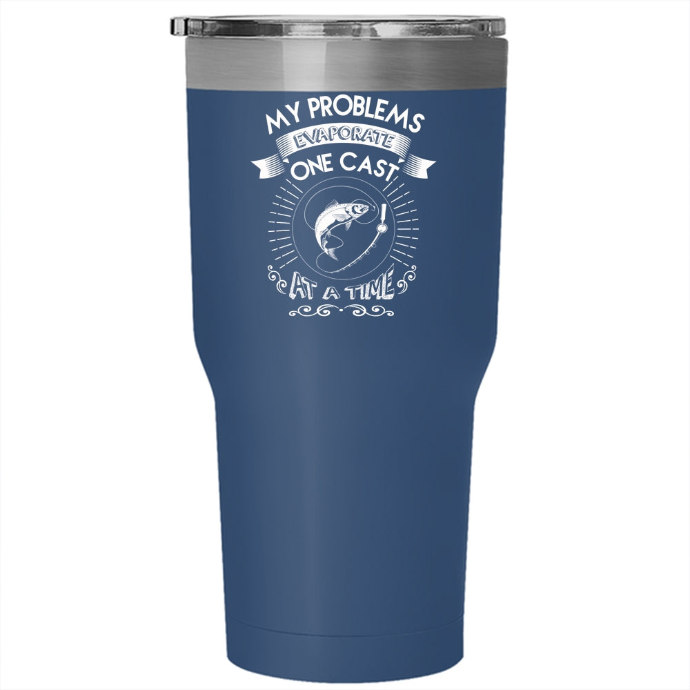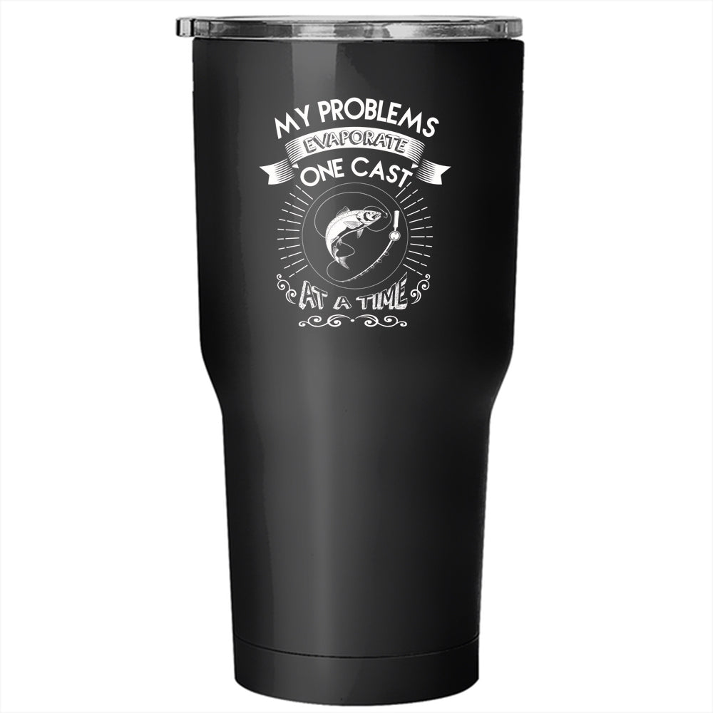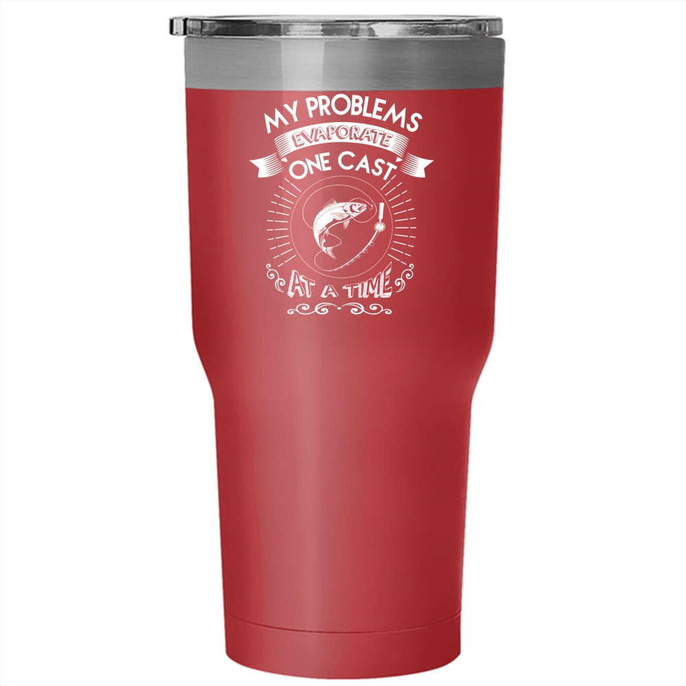 My Problems Evaporate One Cast At A Time Tumbler 30 oz Stainless Steel, Cool Fishing Travel Mug