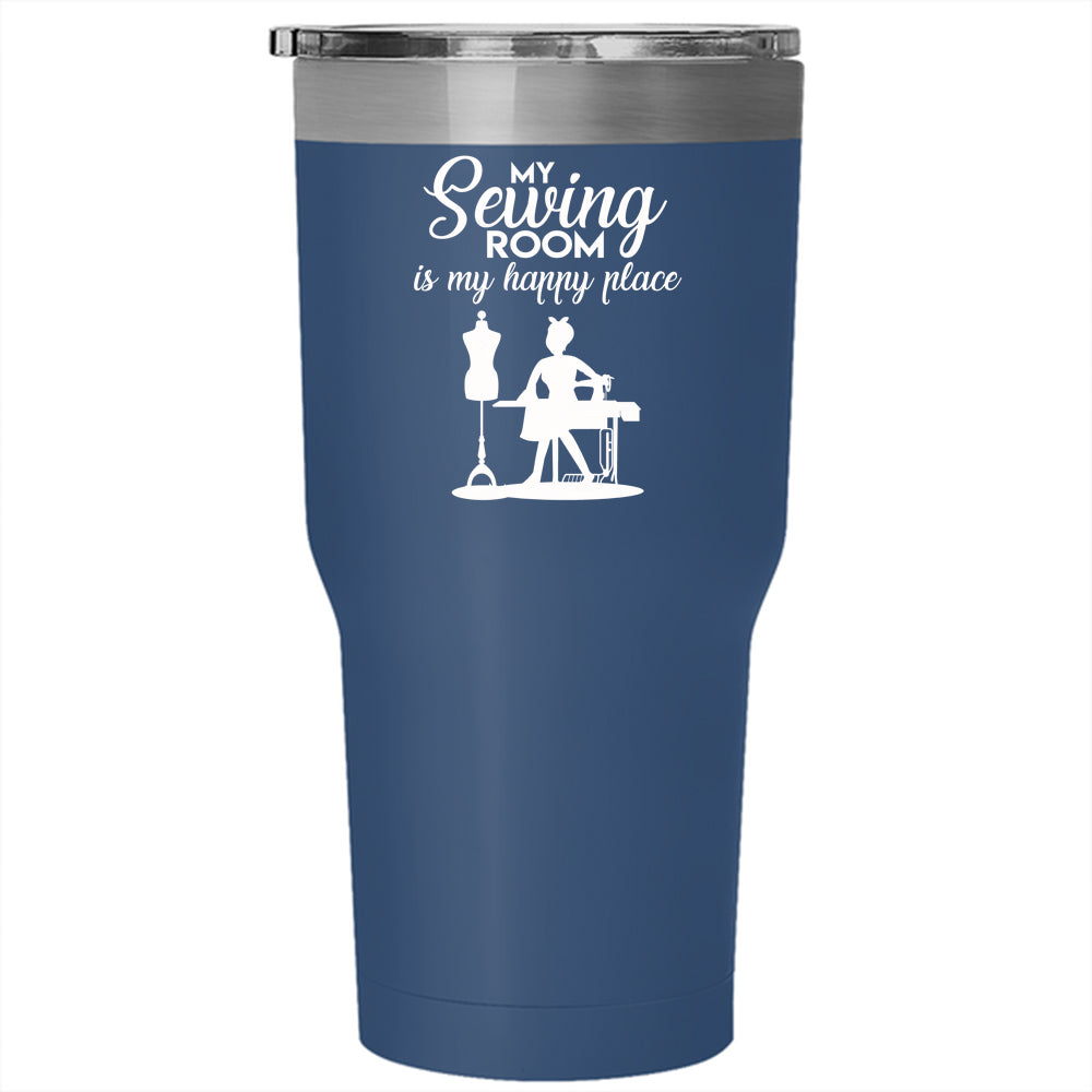 My Sewing Room Is My Happy Place Tumbler 30 oz Stainless Steel, Cute Girls Travel Mug