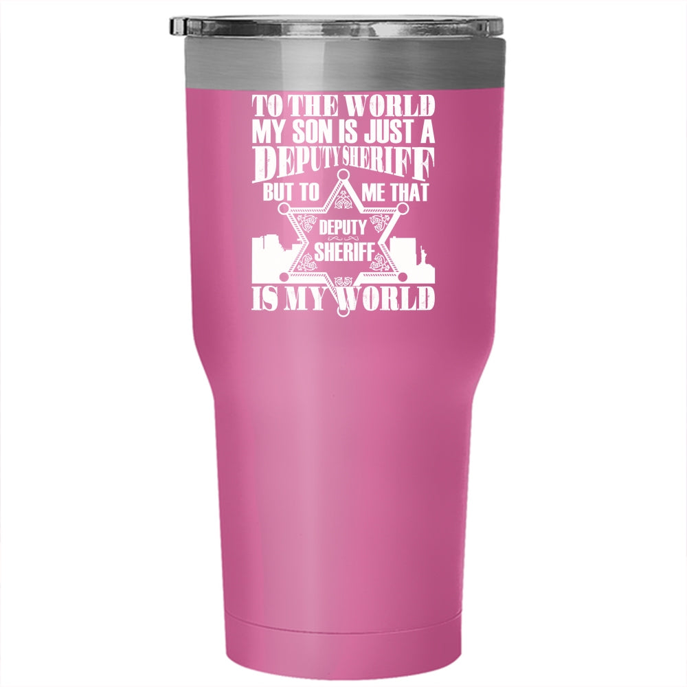 My Son Is Just A Deputy Sheriff Tumbler 30 oz Stainless Steel, That Deputy Sheriff Is My World Travel Mug