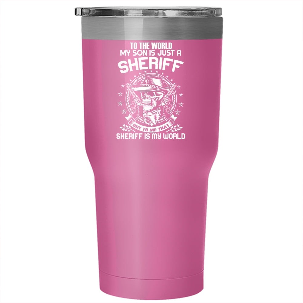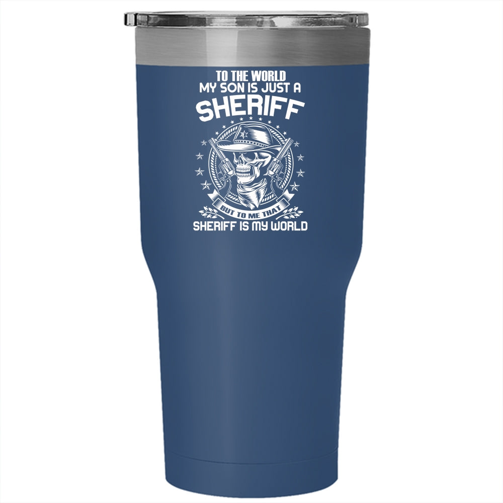 My Son Is Just A Sheriff Tumbler 30 oz Stainless Steel, To me That Sheriff Is My World Travel Mug