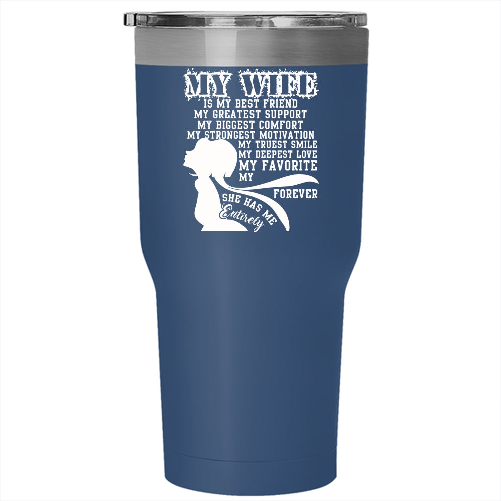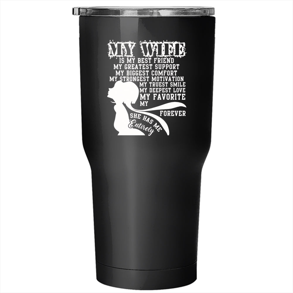 My Wife Is My Best Friend Tumbler 30 oz Stainless Steel, She Has Me Entirely Travel Mug