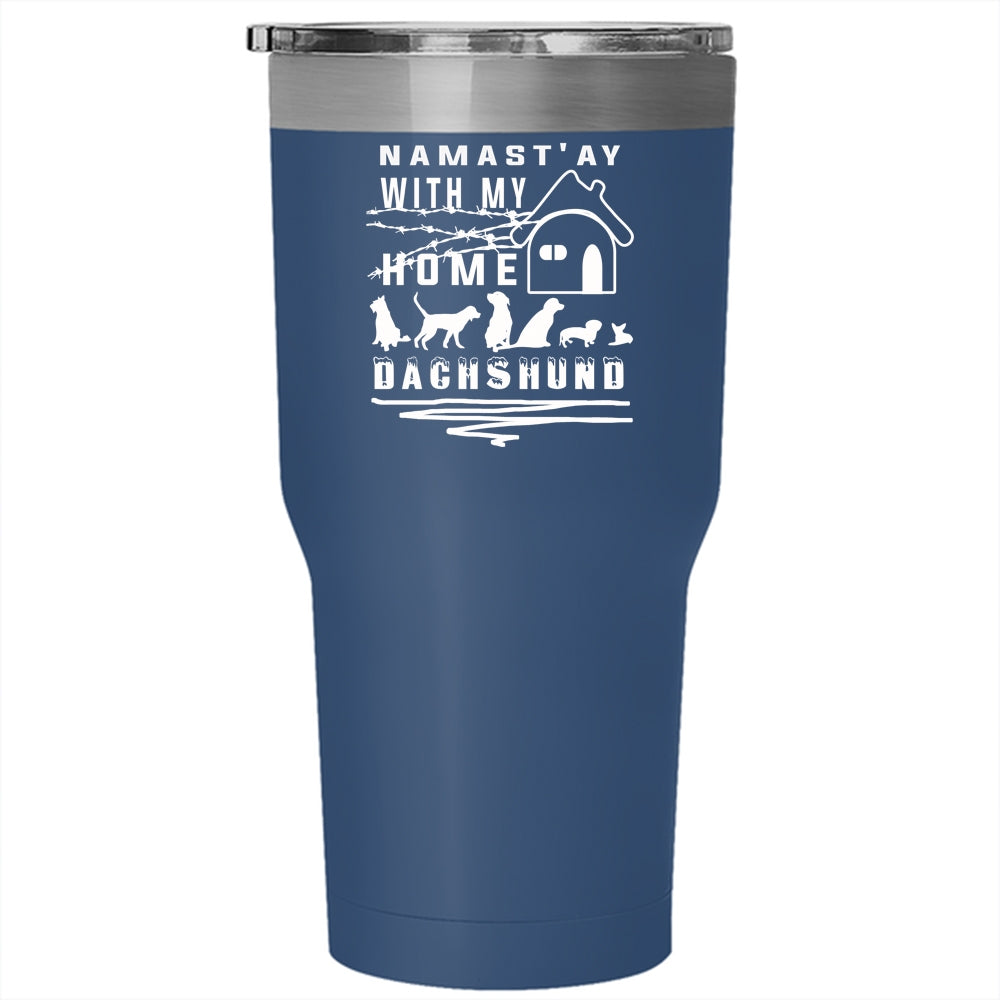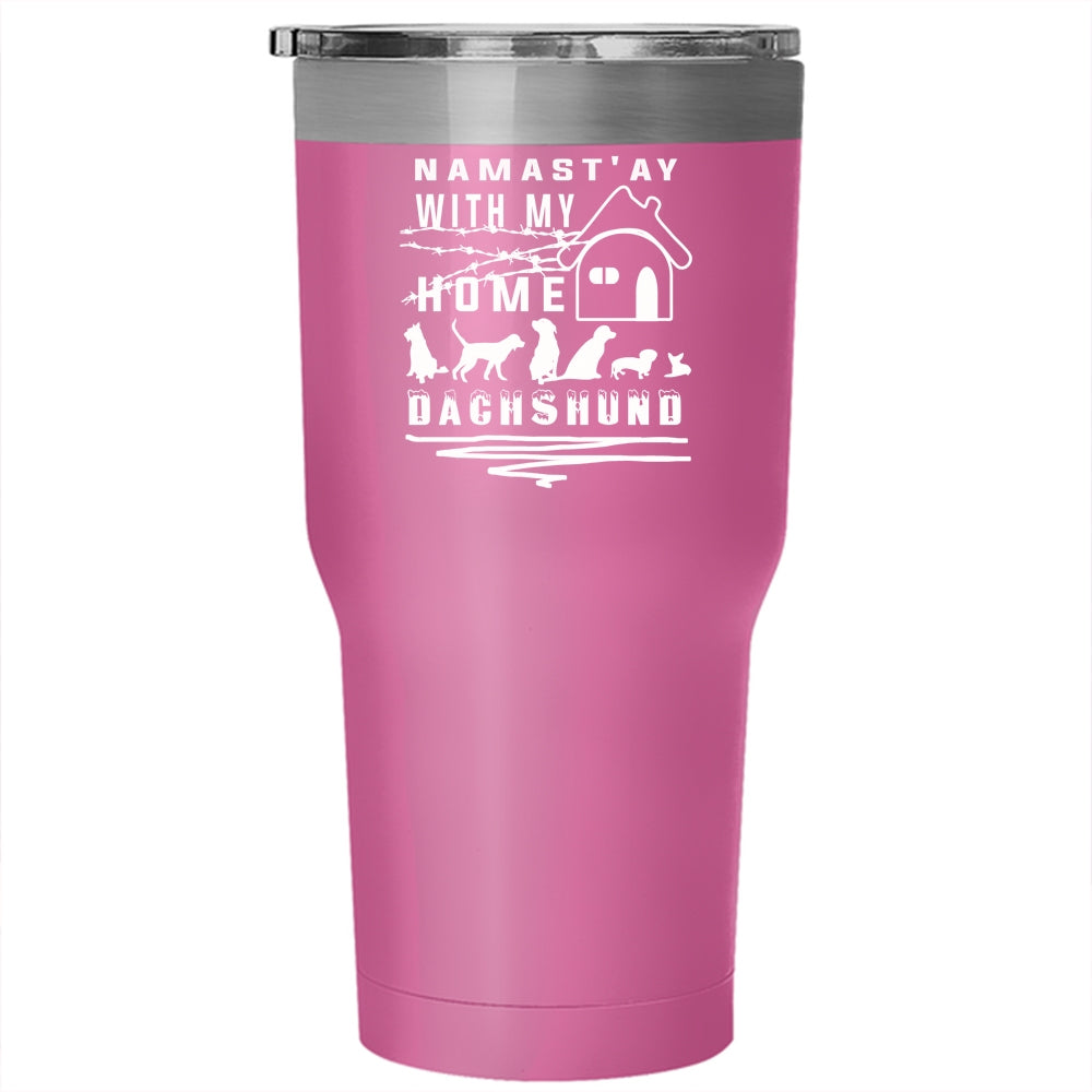 Namast' Ay With My Home Dachshund Tumbler 30 oz Stainless Steel, Cute Dachshund Lovers Travel Mug