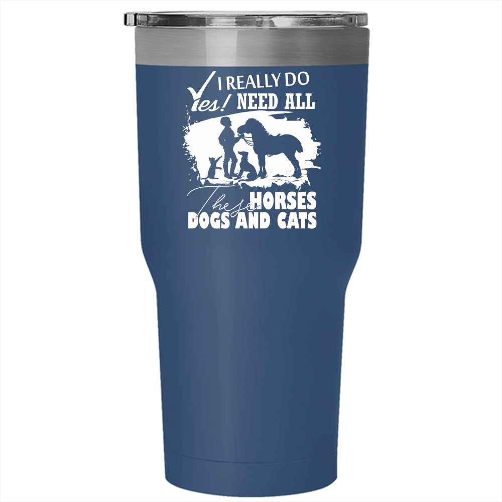 Need All These Horses Dogs And Cats Tumbler 30 oz Stainless Steel, Cute Cattle Travel Mug