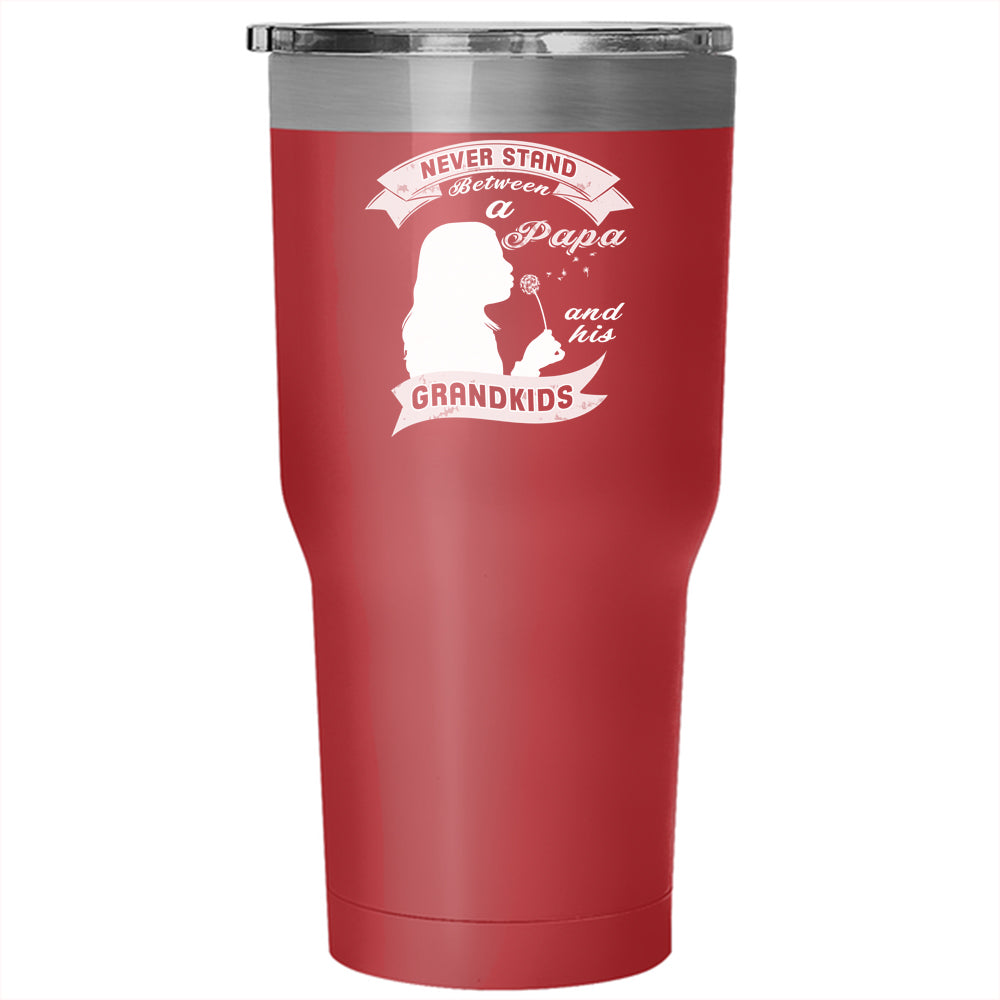 Never Stand Between A Papa And His Grandkids Tumbler 30 oz Stainless Steel, Cute Travel Mug