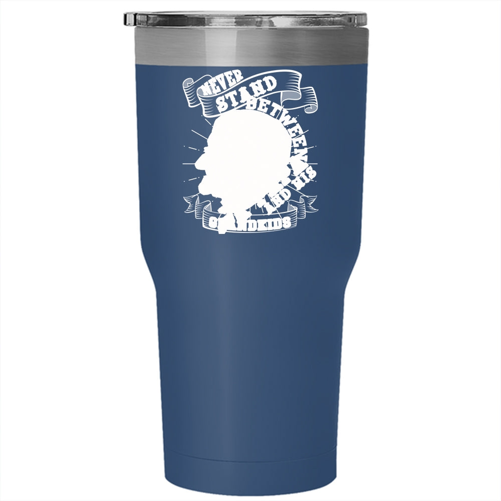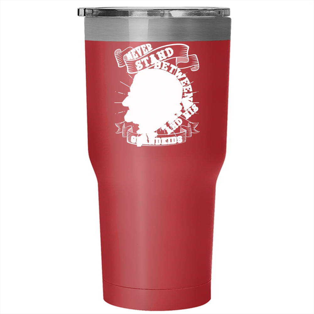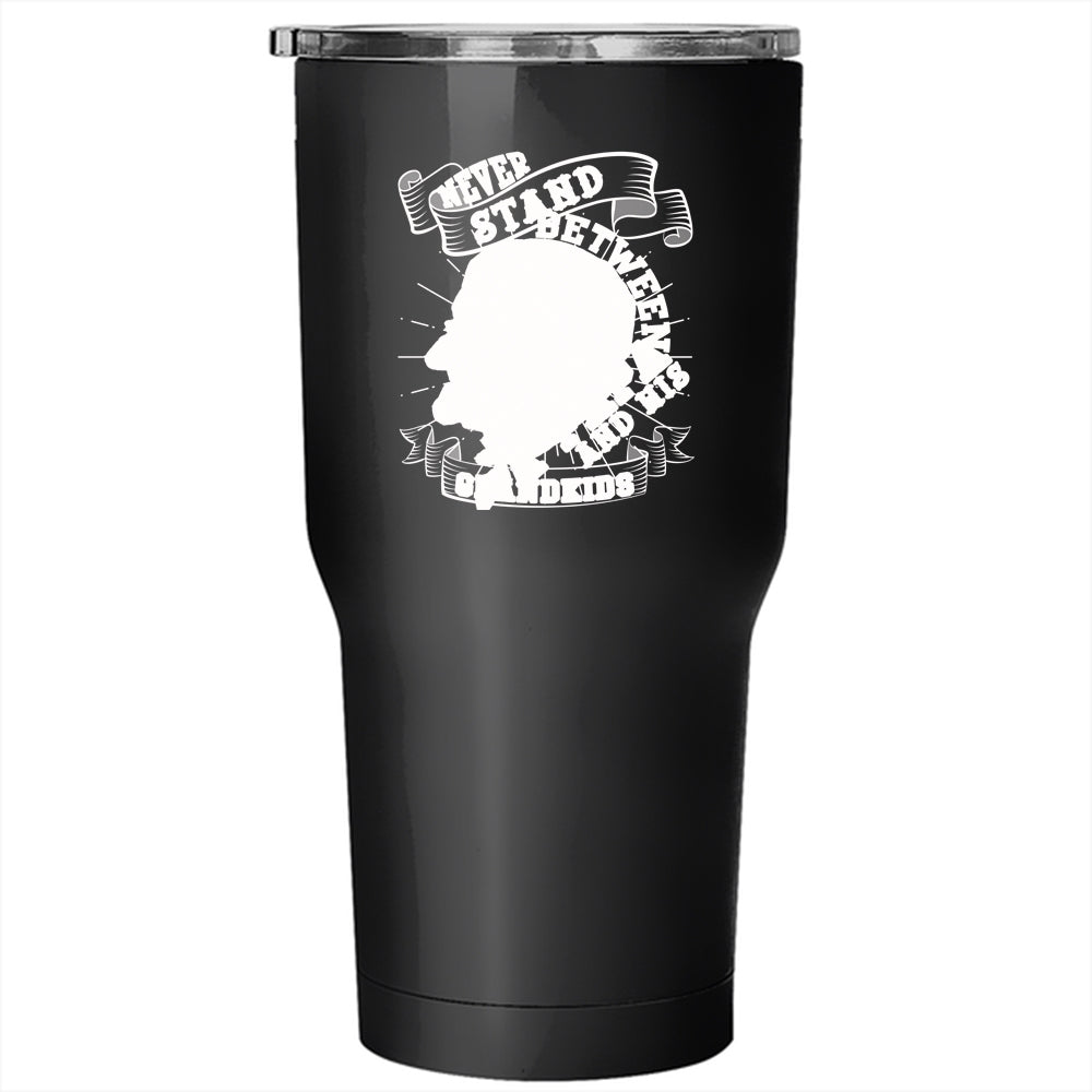 Never Stand Between A Papa And His Grandkids Tumbler 30 oz Stainless Steel, Funny Travel Mug