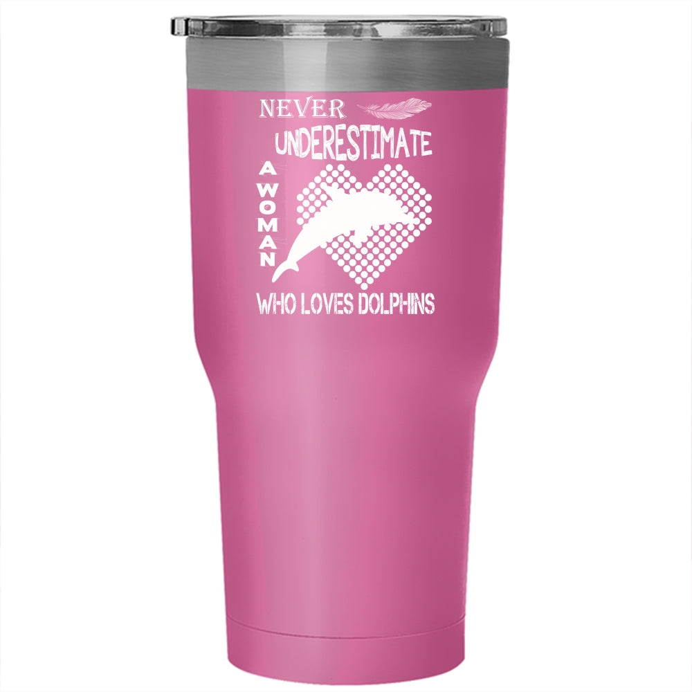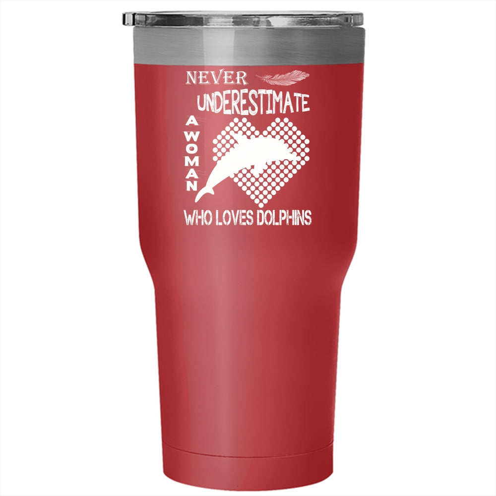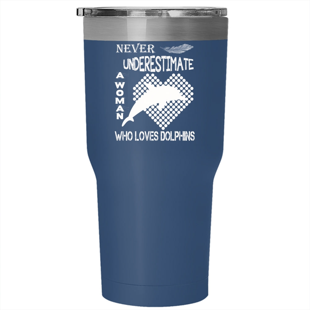 Never Underestimate A Woman Loves Dolphins Tumbler 30 oz Stainless Steel, Cute Girls Travel Mug