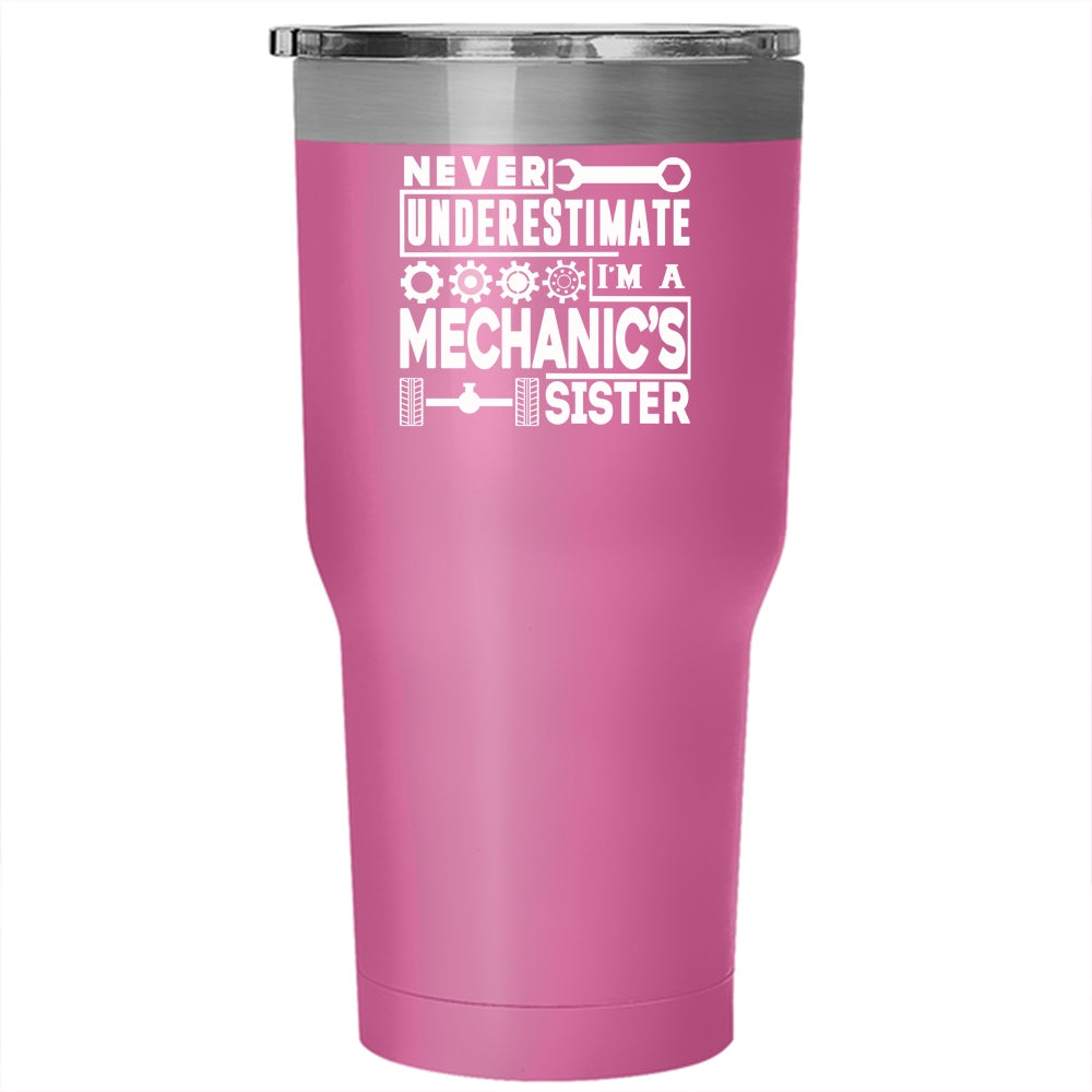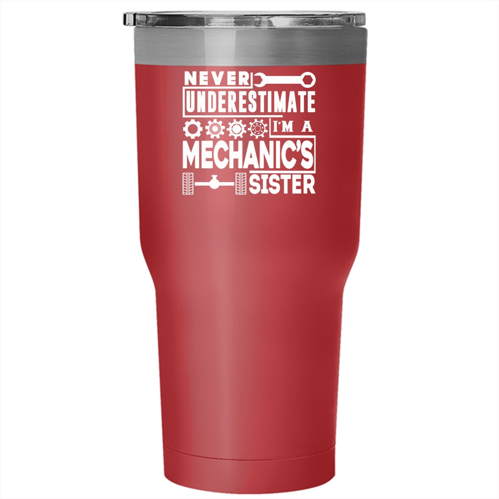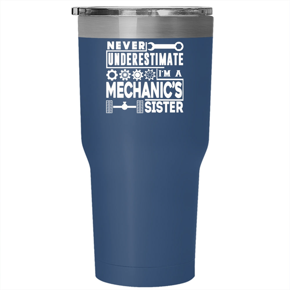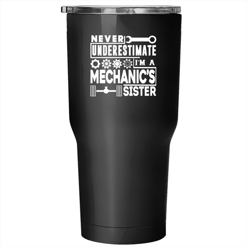 Never Underestimate Tumbler 30 oz Stainless Steel, I'm A Mechanic's Sister Travel Mug