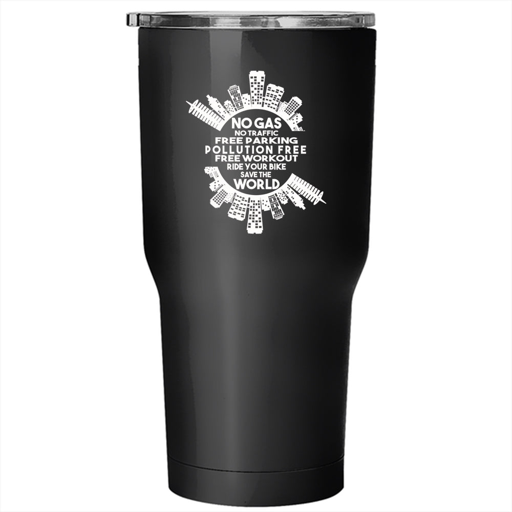 No Gas No Traffic Free Parking Tumbler 30 oz Stainless Steel, Ride Your Bike save The World Travel Mug