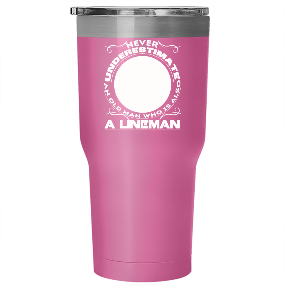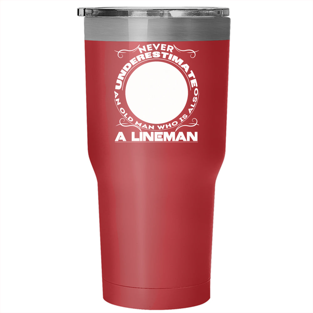 Old Man Is A Lineman Tumbler 30 oz Stainless Steel, Cool Grandpas Travel Mug