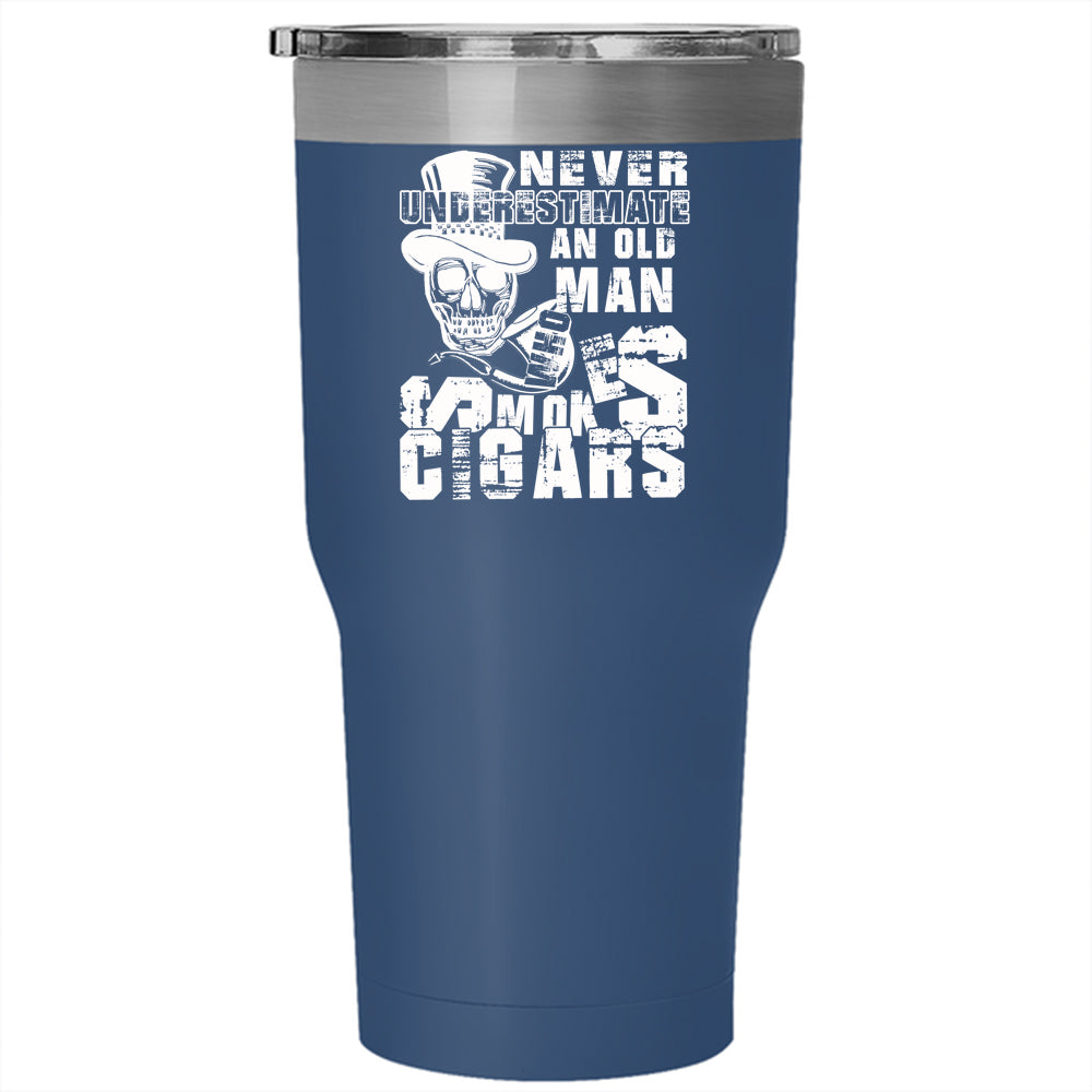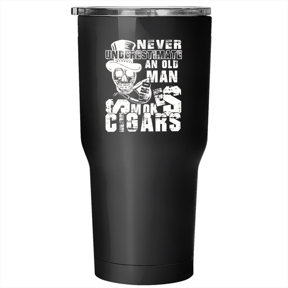 Old Man Smokes Cigars Tumbler 30 oz Stainless Steel, Awesome Grandpa Travel Mug