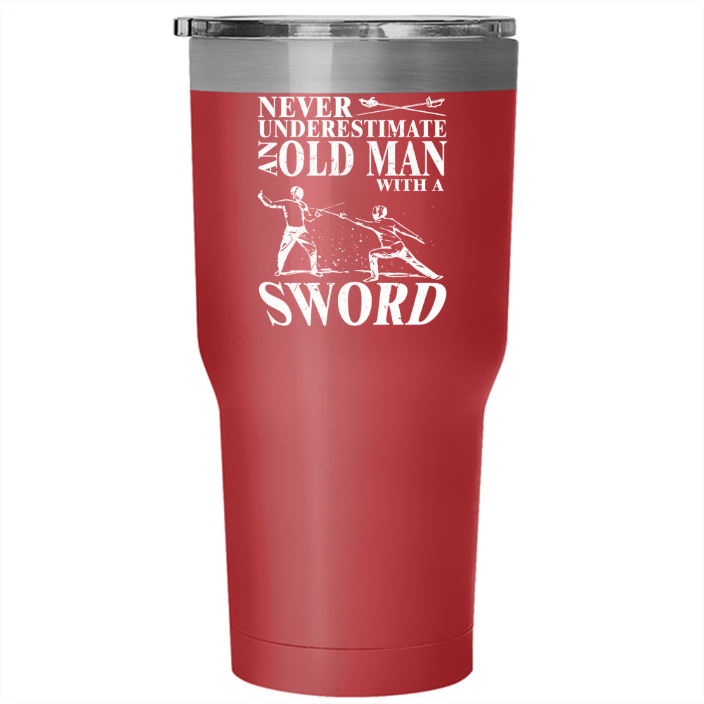 Old Man With A Sword Tumbler 30 oz Stainless Steel, Funny Grandpa Travel Mug