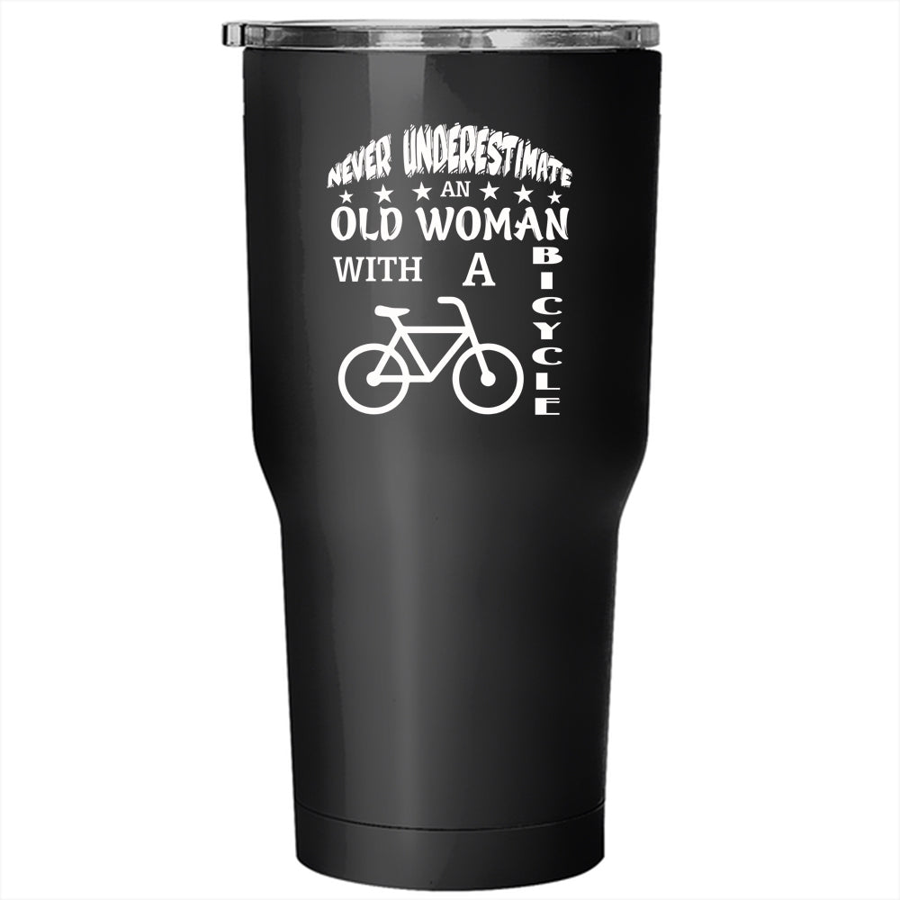 Old Woman With A Bicycle Tumbler 30 oz Stainless Steel, Gift For Old Biker Travel Mug