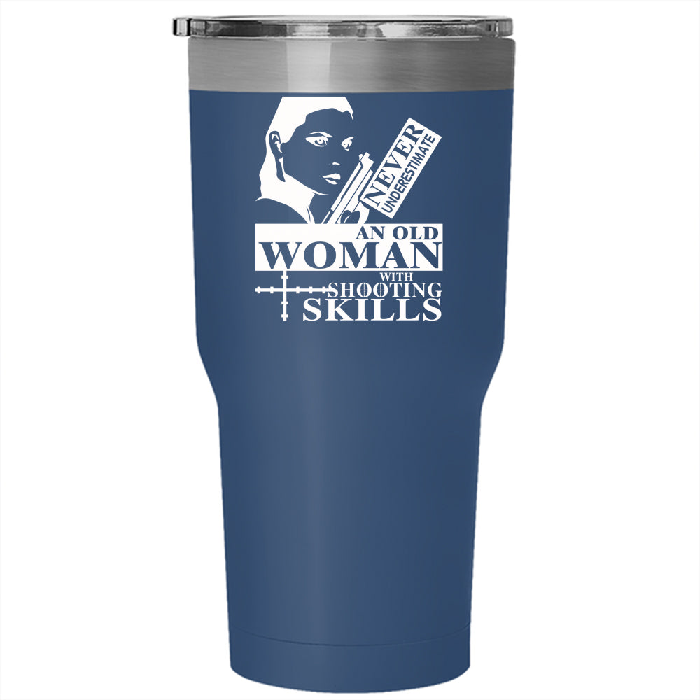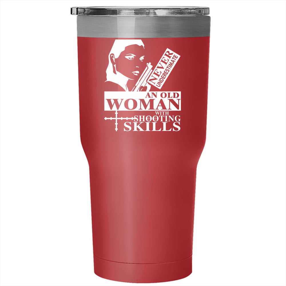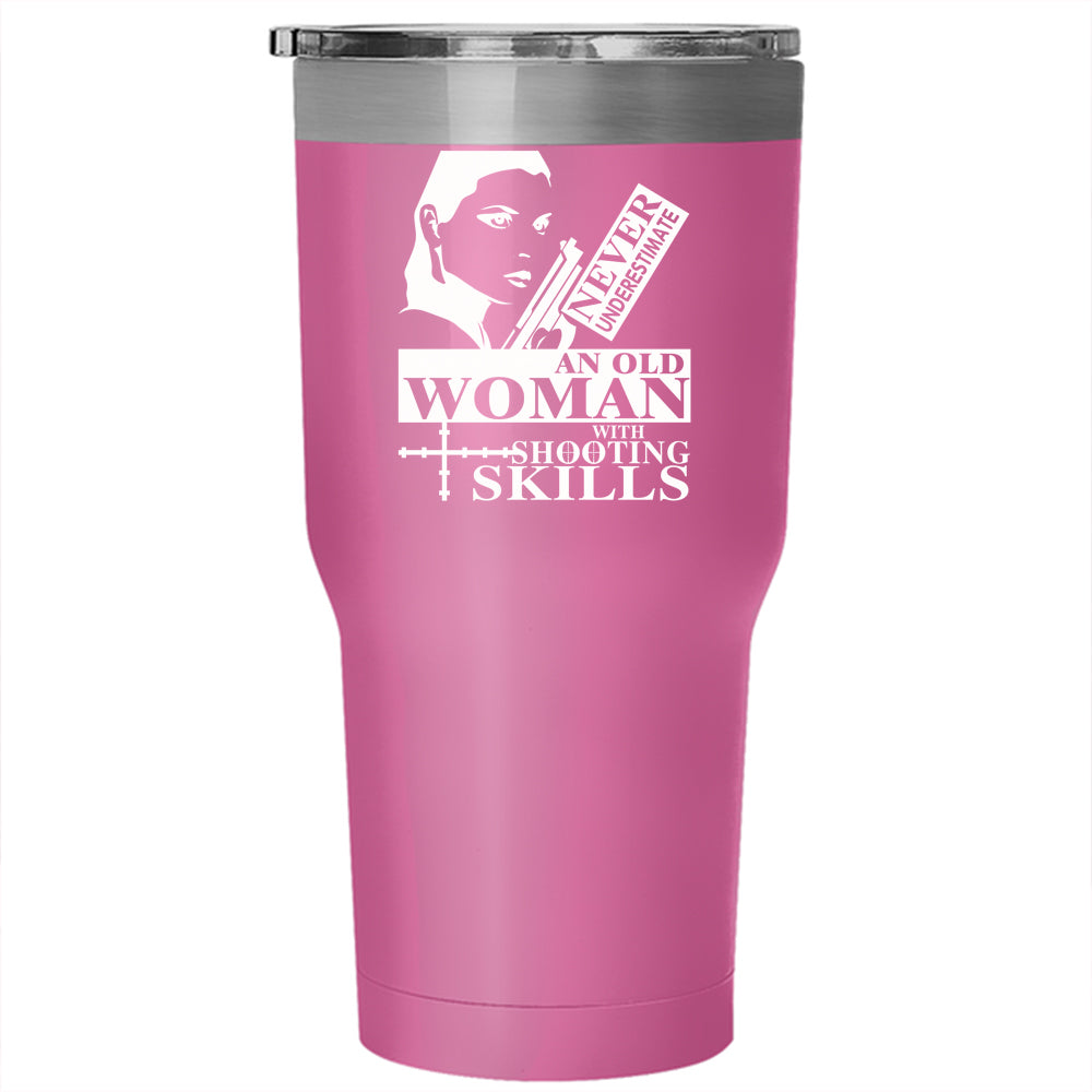 Old Woman With Shooting Skills Tumbler 30 oz Stainless Steel, Cool Grandma Travel Mug