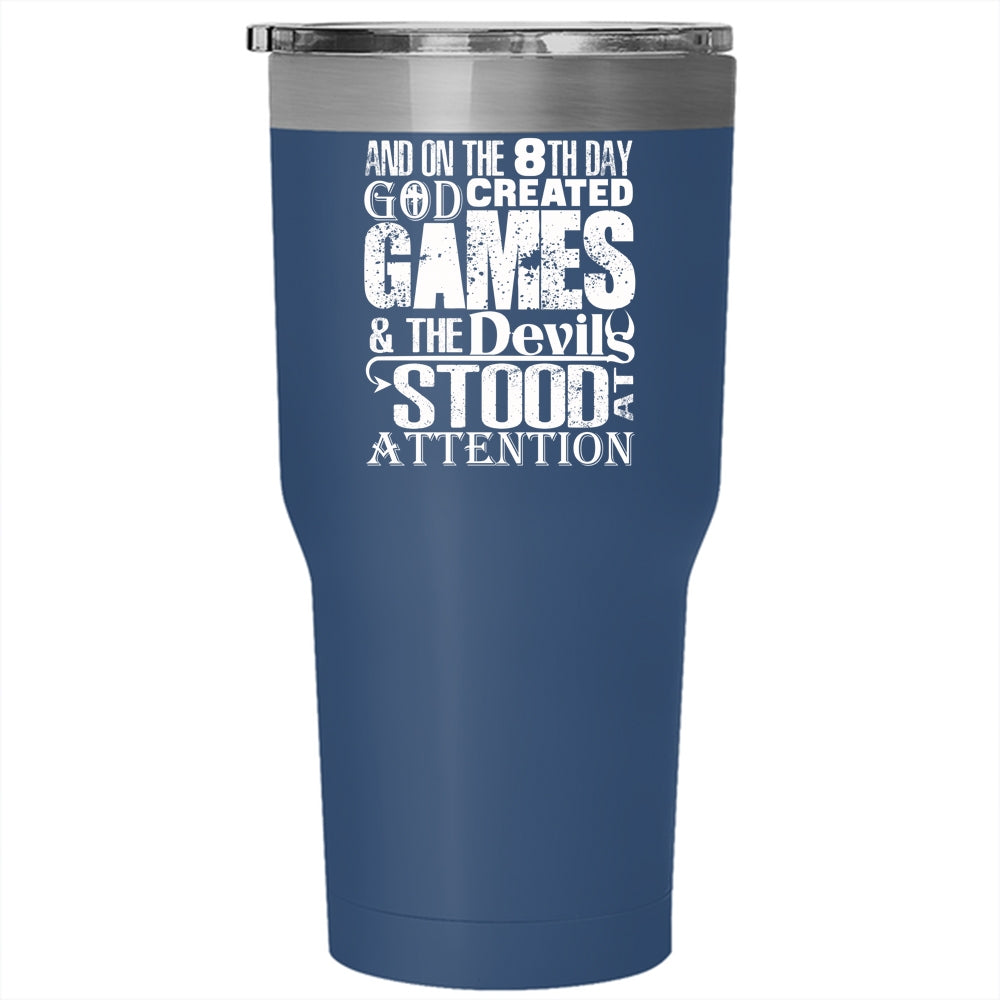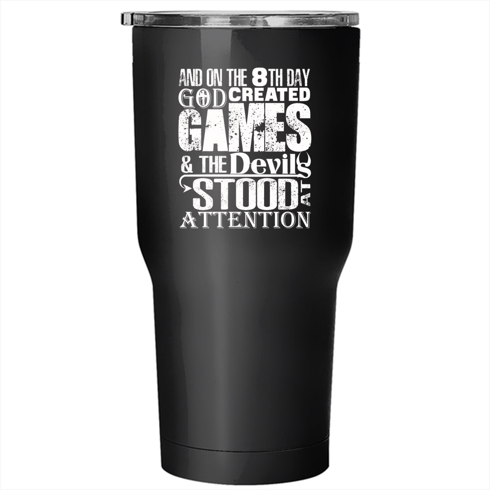 On The 8th Day God Created Games Tumbler 30 oz Stainless Steel, Cool Gamers Travel Mug