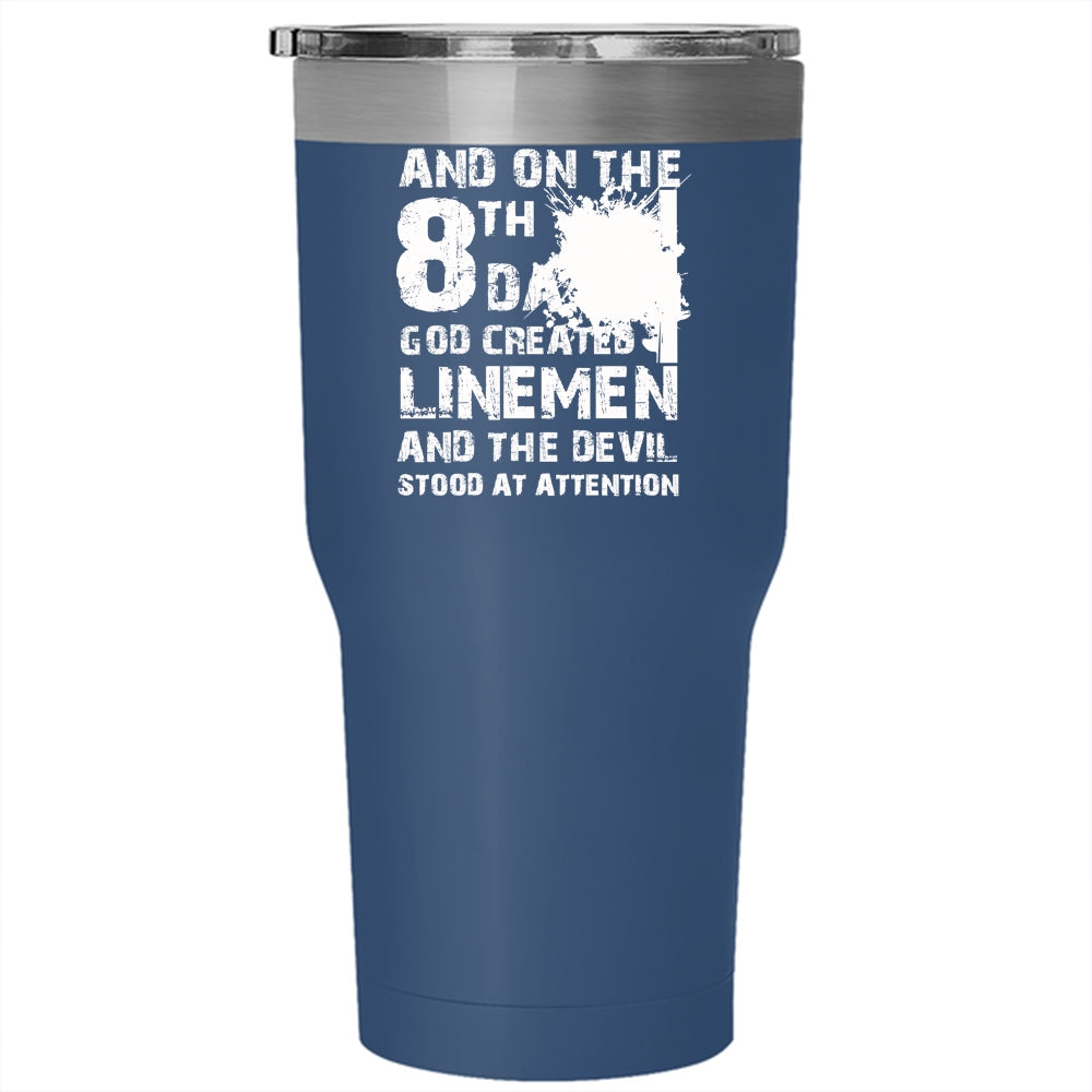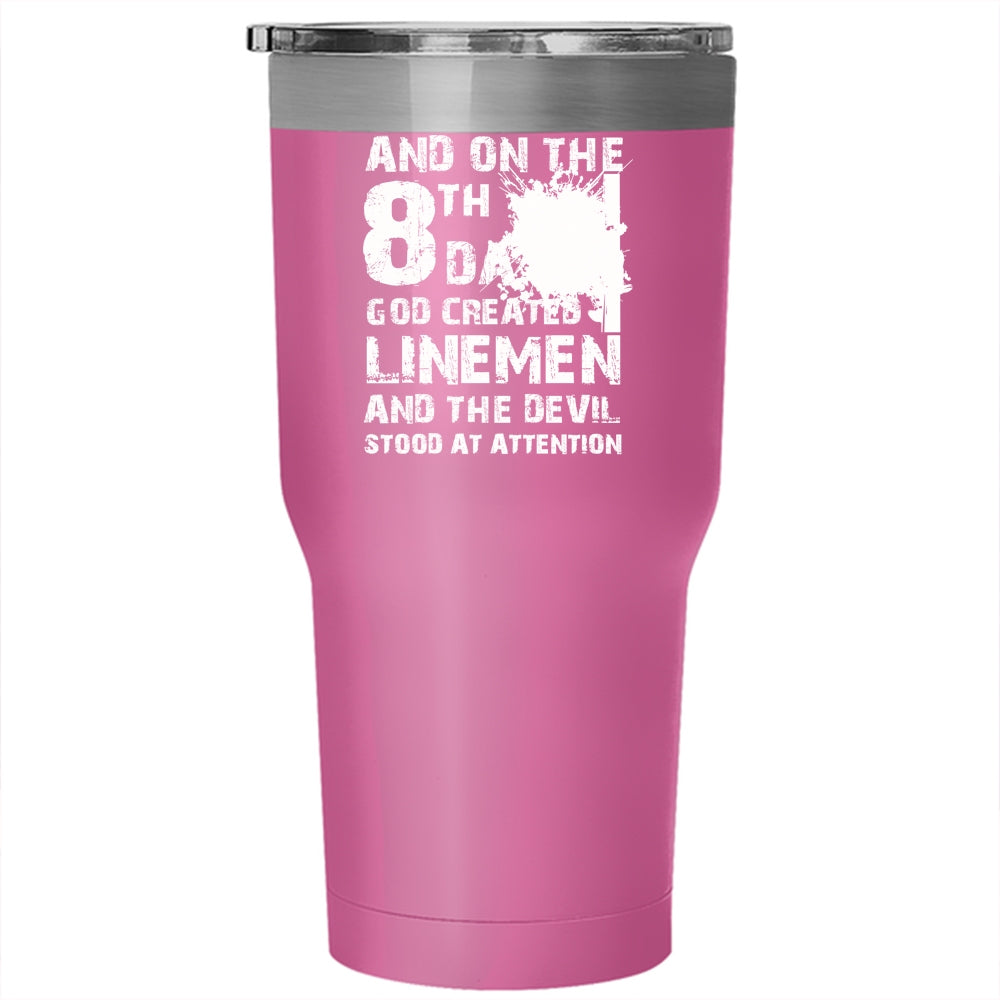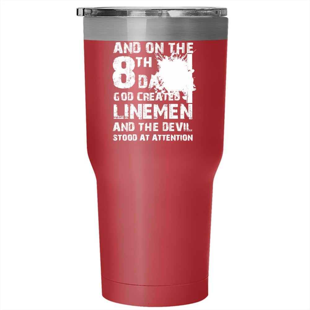 On The 8th Day God Created Linemen Tumbler 30 oz Stainless Steel, Cool Linemen Travel Mug