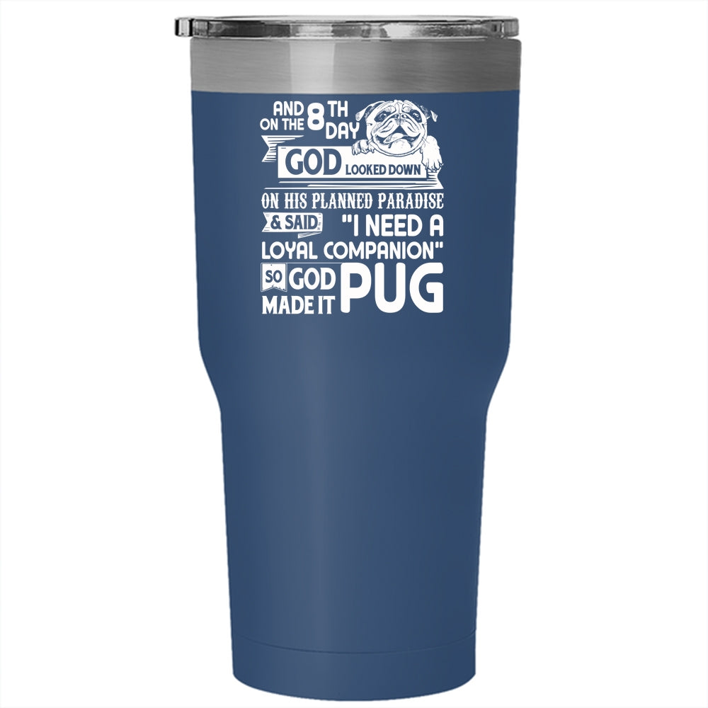On The 8th Day God Made Pug Tumbler 30 oz Stainless Steel, Funny Pug Lover Travel Mug