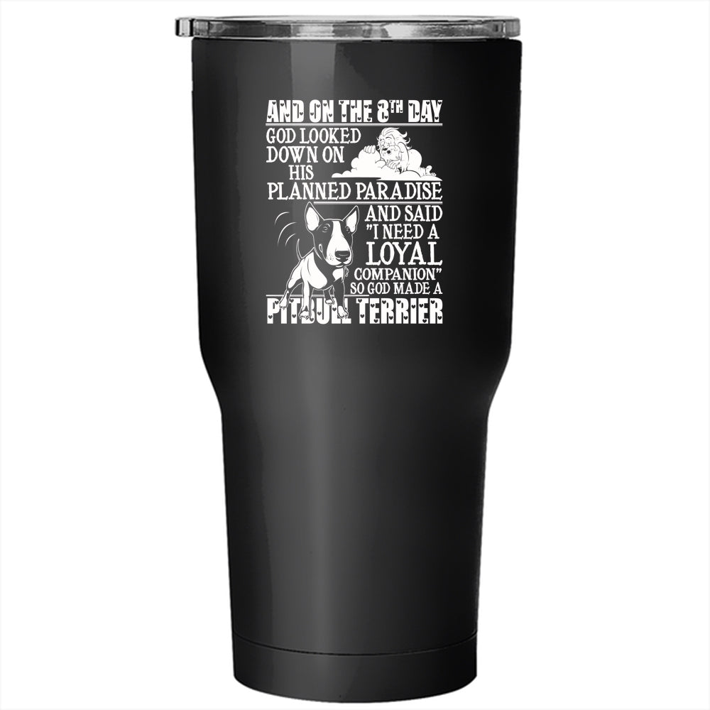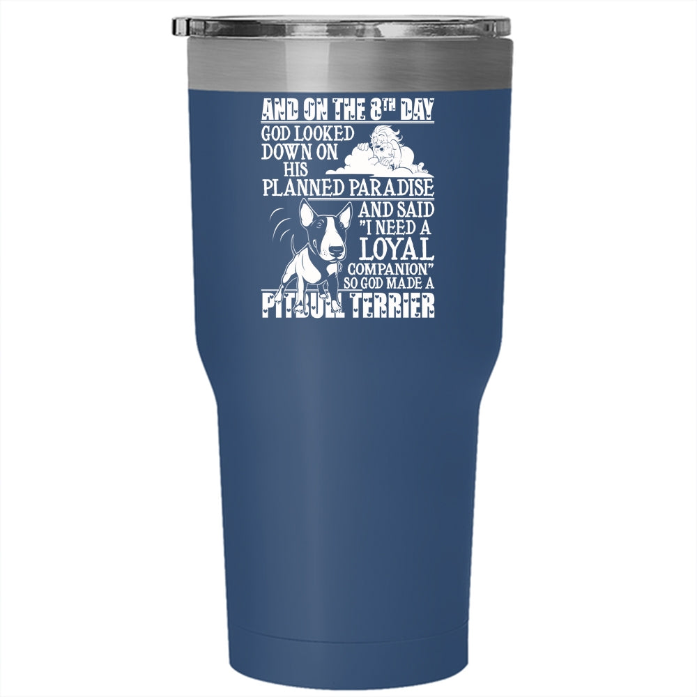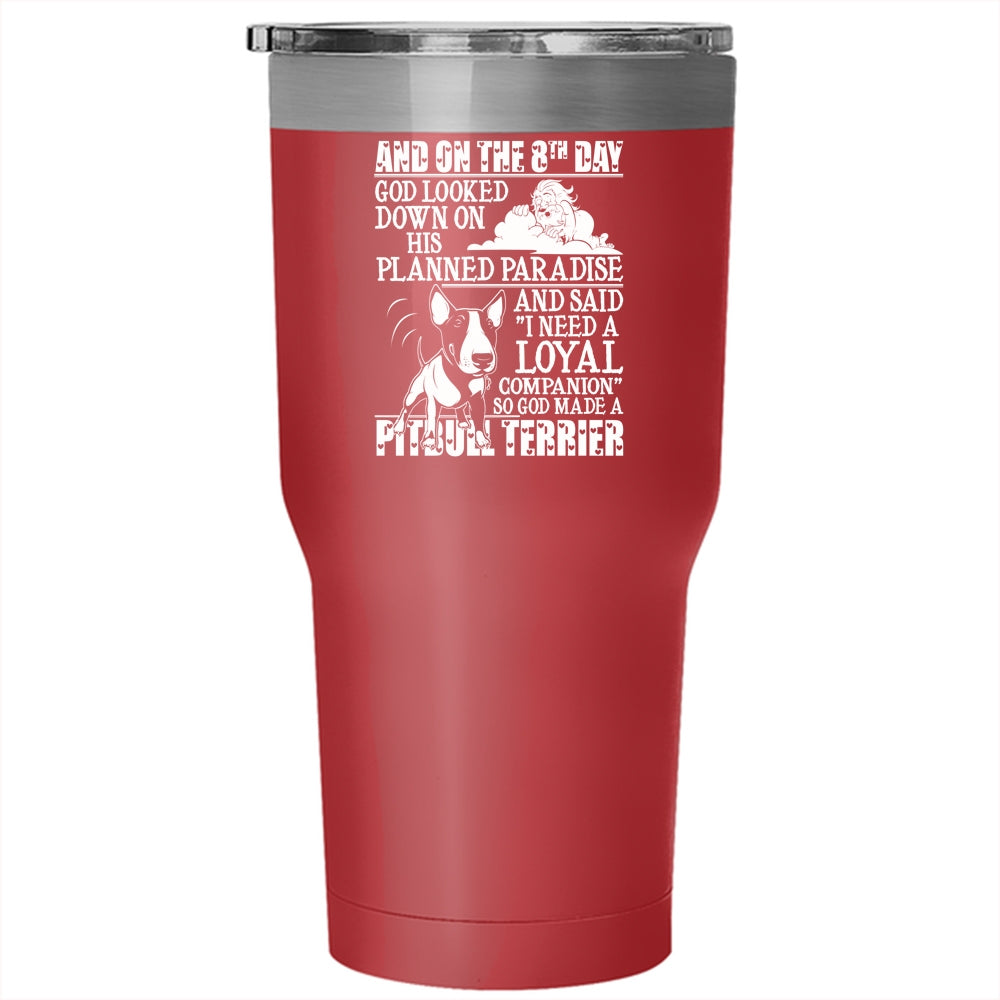 On The 8th God Made A Pitbull Terrier Tumbler 30 oz Stainless Steel, Cool Pitbull Terrier Travel Mug