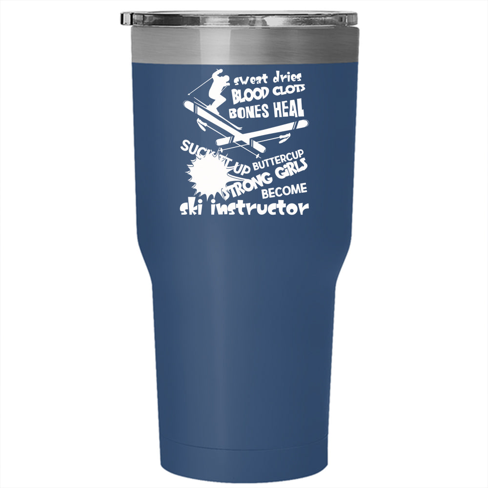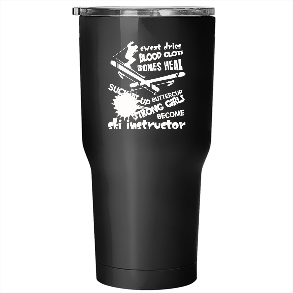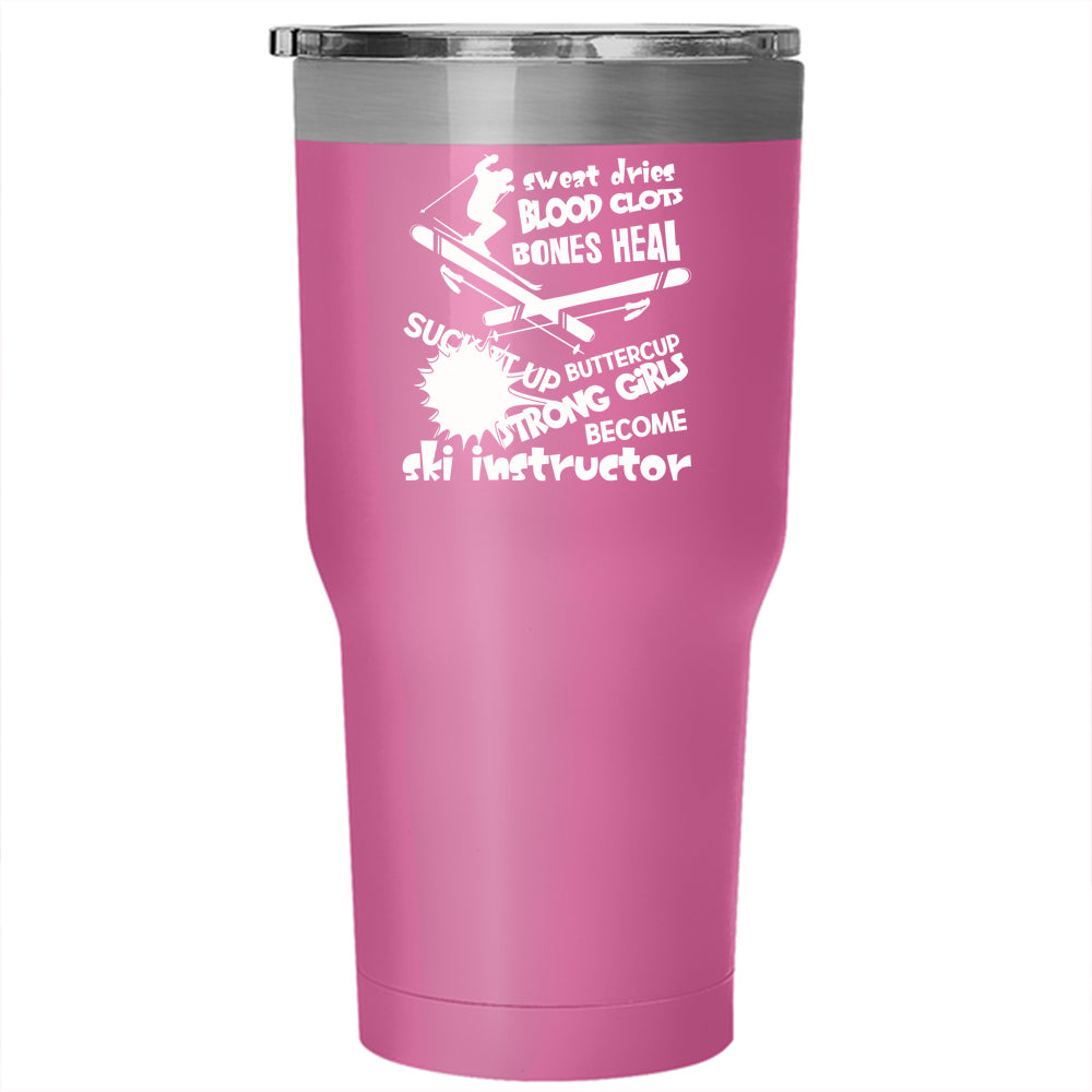 Only Strong Girls Become Ski Instructor Tumbler 30 oz Stainless Steel, Funny Instructor Travel Mug