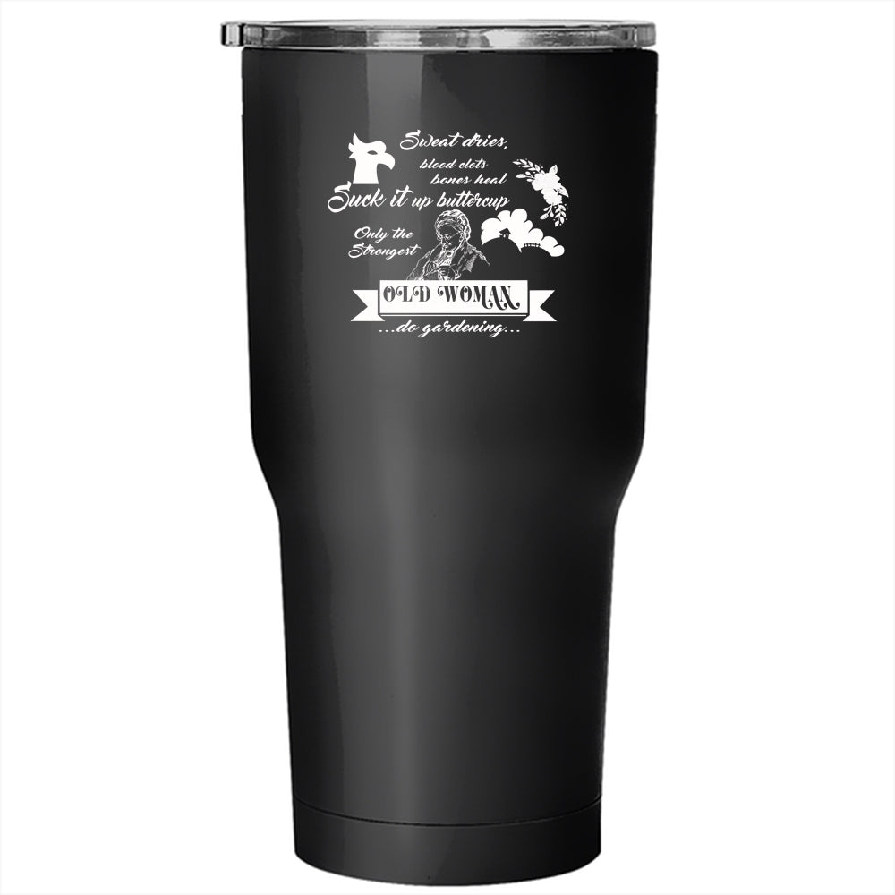 Only The Strongest Old Woman Do Gardening Tumbler 30 oz Stainless Steel, Cute Grandmas Travel Mug