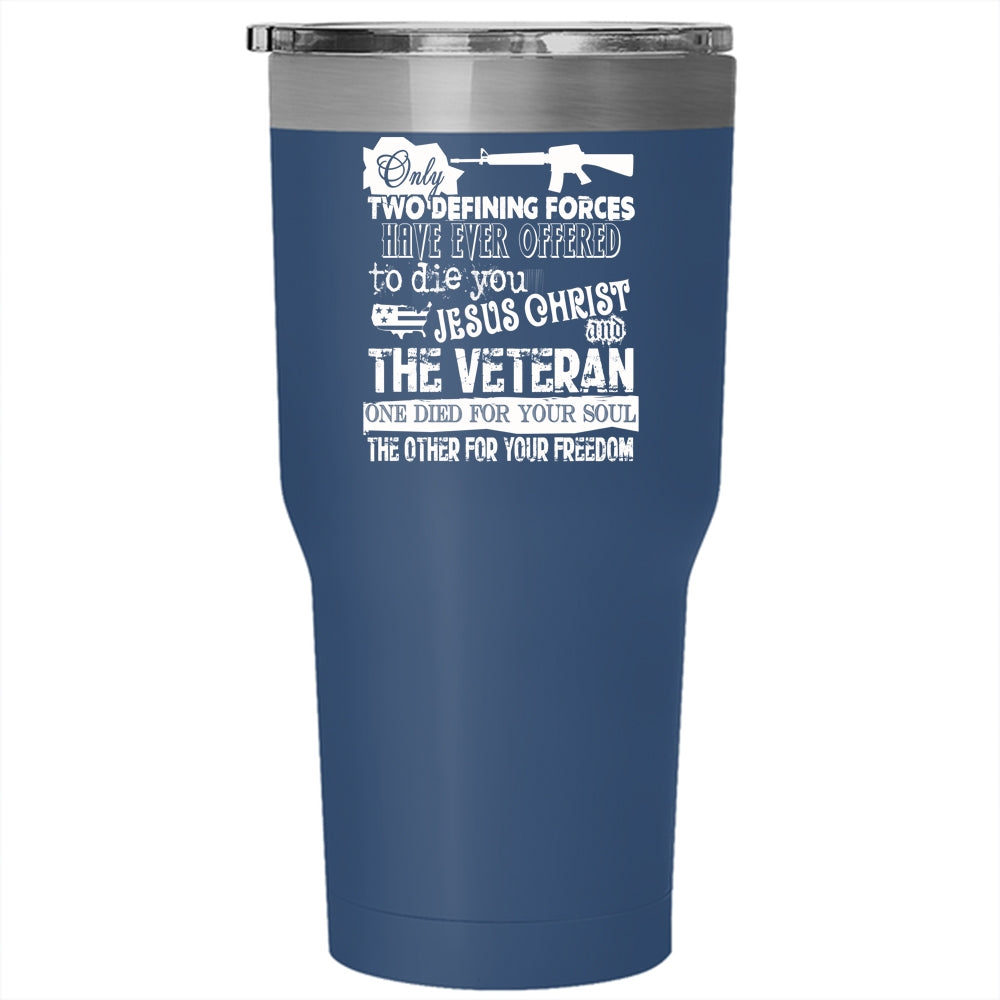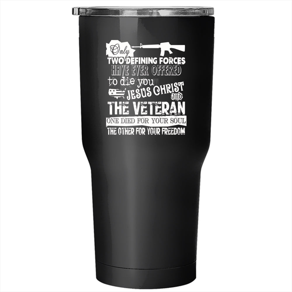 Only Two Defining Forces Tumbler 30 oz Stainless Steel, Cool Veteran Travel Mug