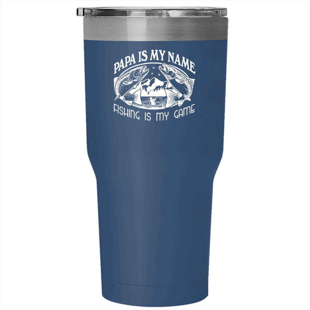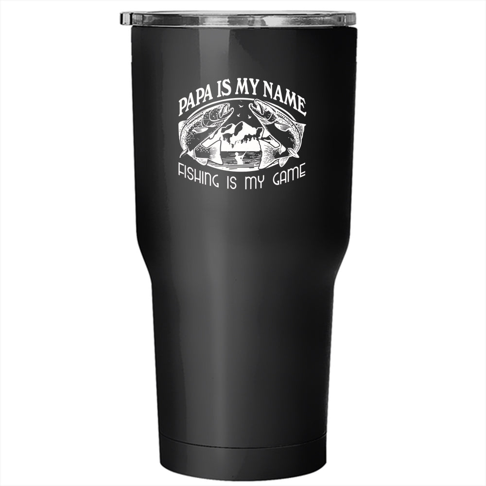 Papa Is My Name Tumbler 30 oz Stainless Steel, Fishing Is My Game Travel Mug