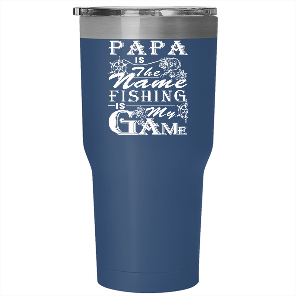 Papa Is The Name Tumbler 30 oz Stainless Steel, Fishing Is My Game Travel Mug