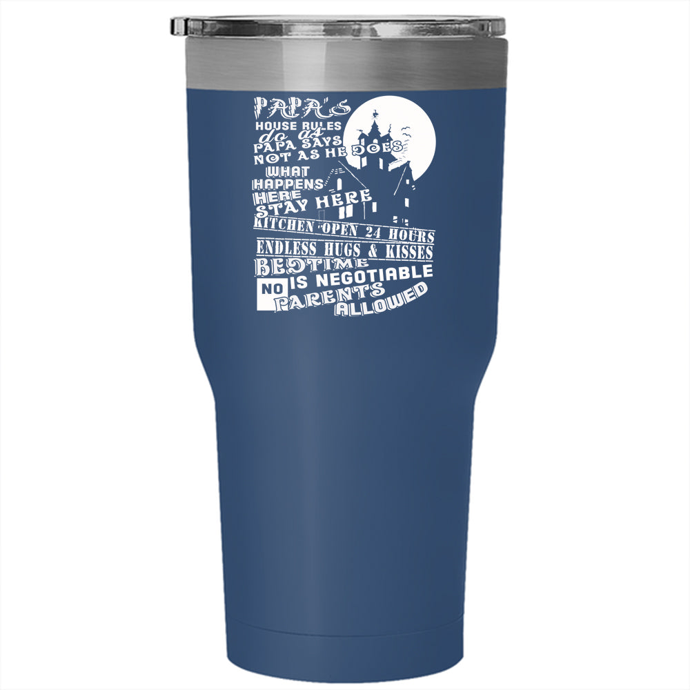 Papa's House Rules Tumbler 30 oz Stainless Steel, Cool Papa Travel Mug