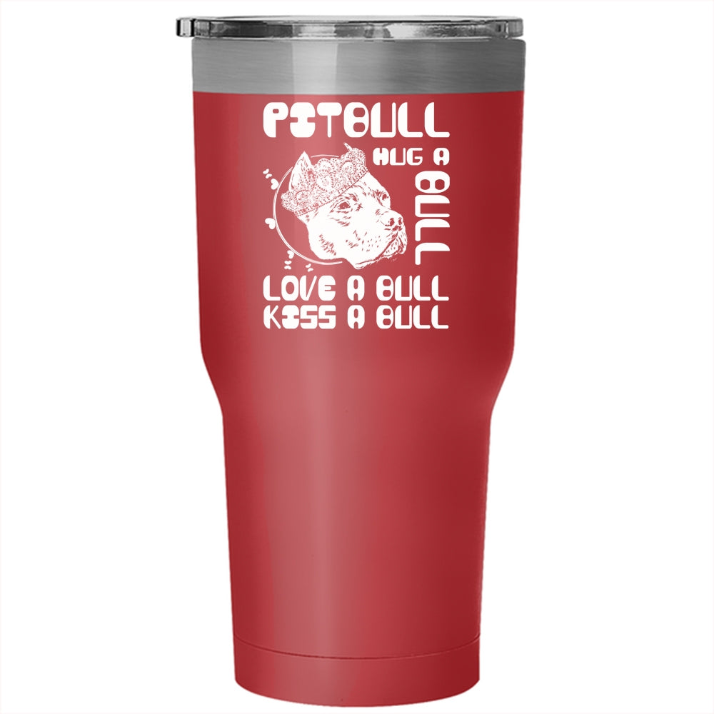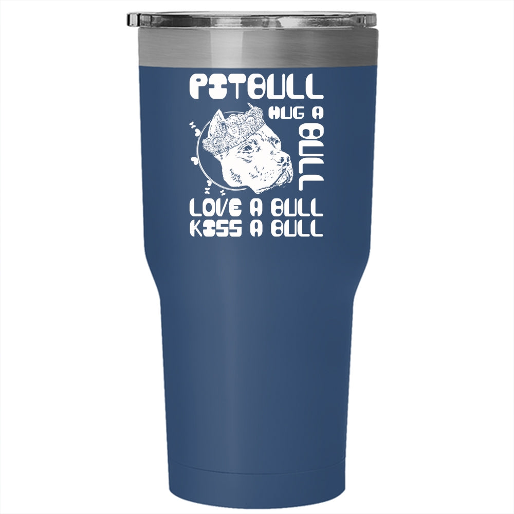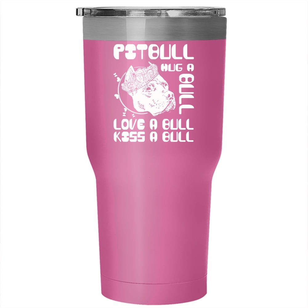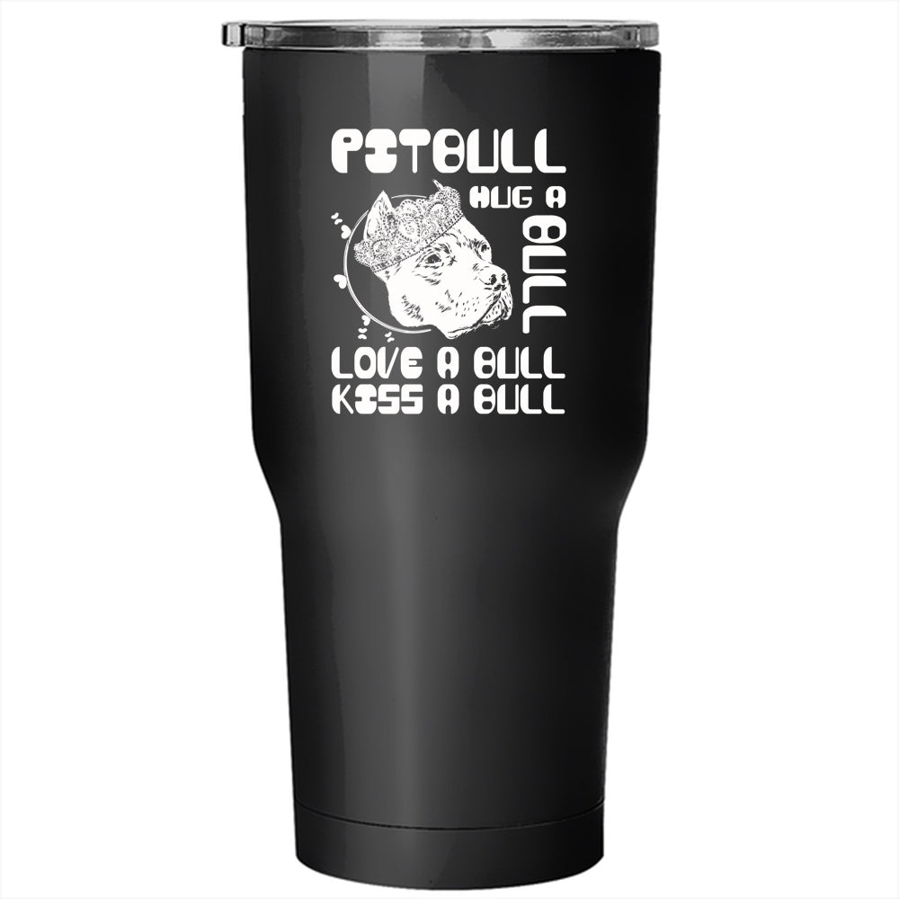 Pitbull Hug A Bull Tumbler 30 oz Stainless Steel, Love A Bull Kiss A Bull Travel Mug