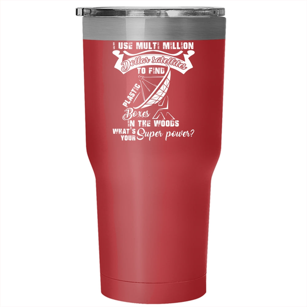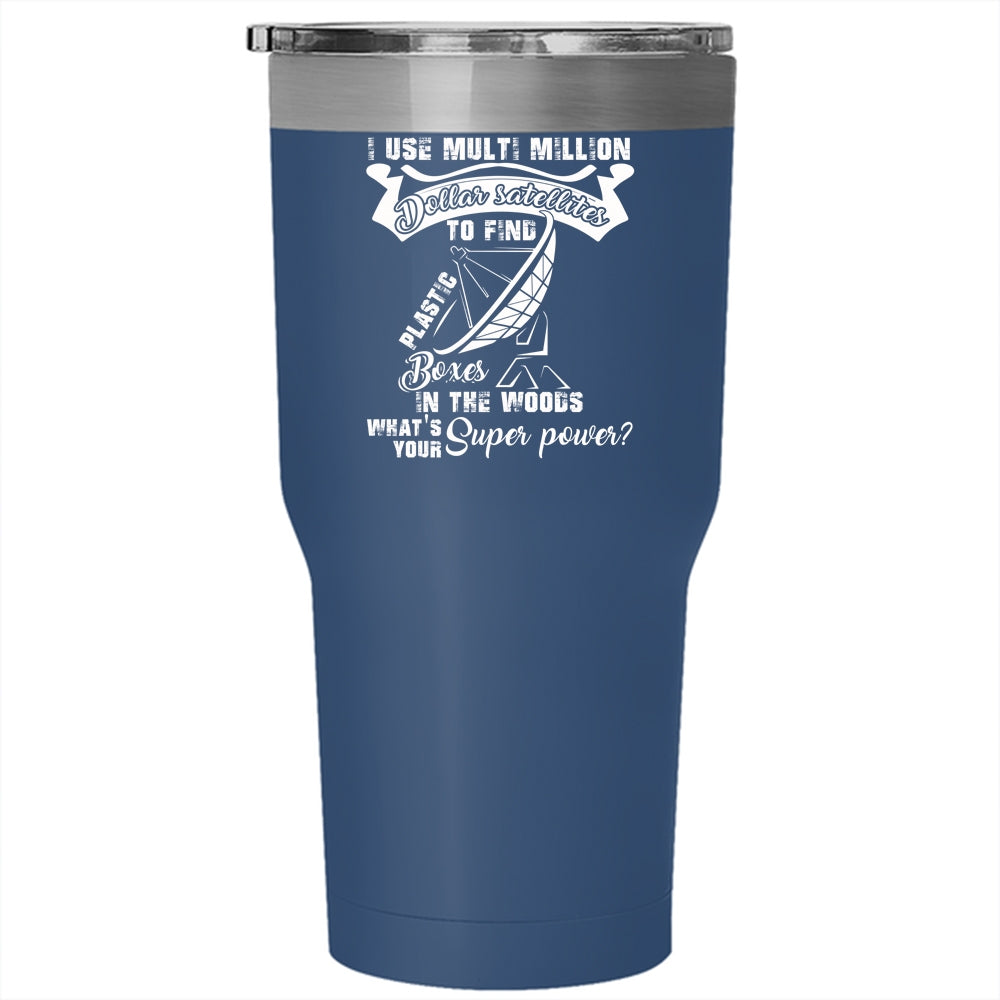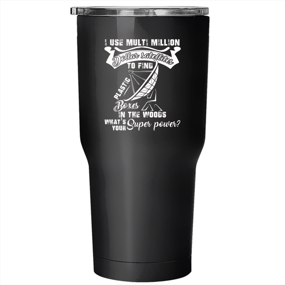 Plastic Boxes In The Woods Tumbler 30 oz Stainless Steel, Funny Geocaching Travel Mug