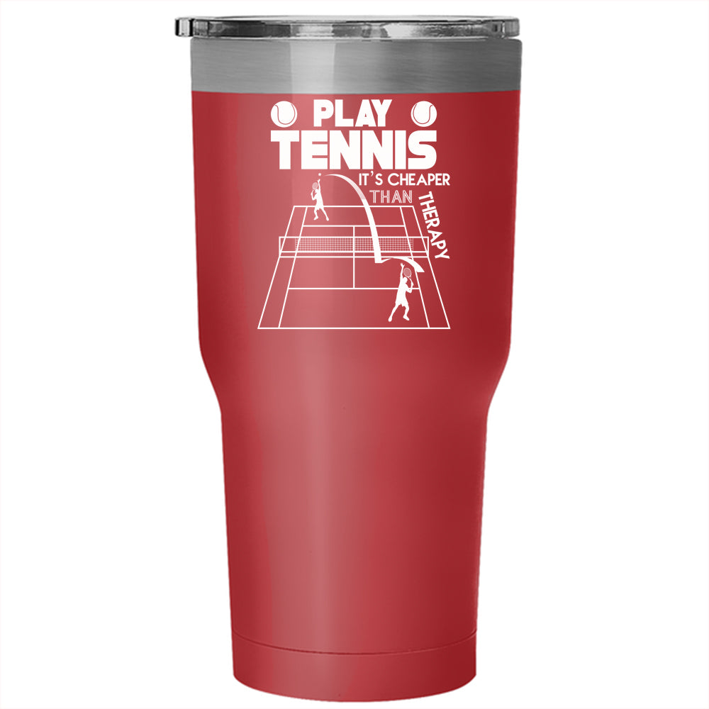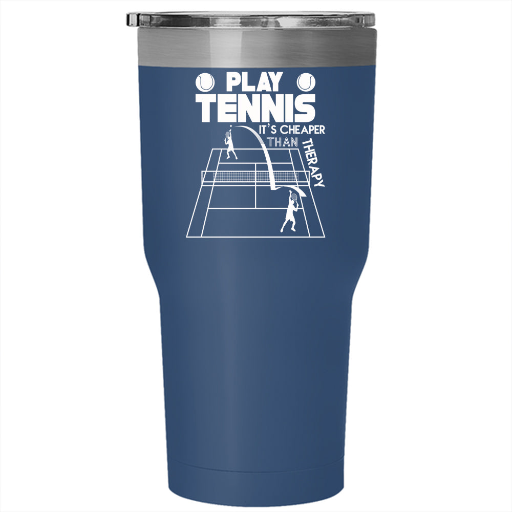 Play Tennis Tumbler 30 oz Stainless Steel, It's Cheaper Than Therapy Travel Mug