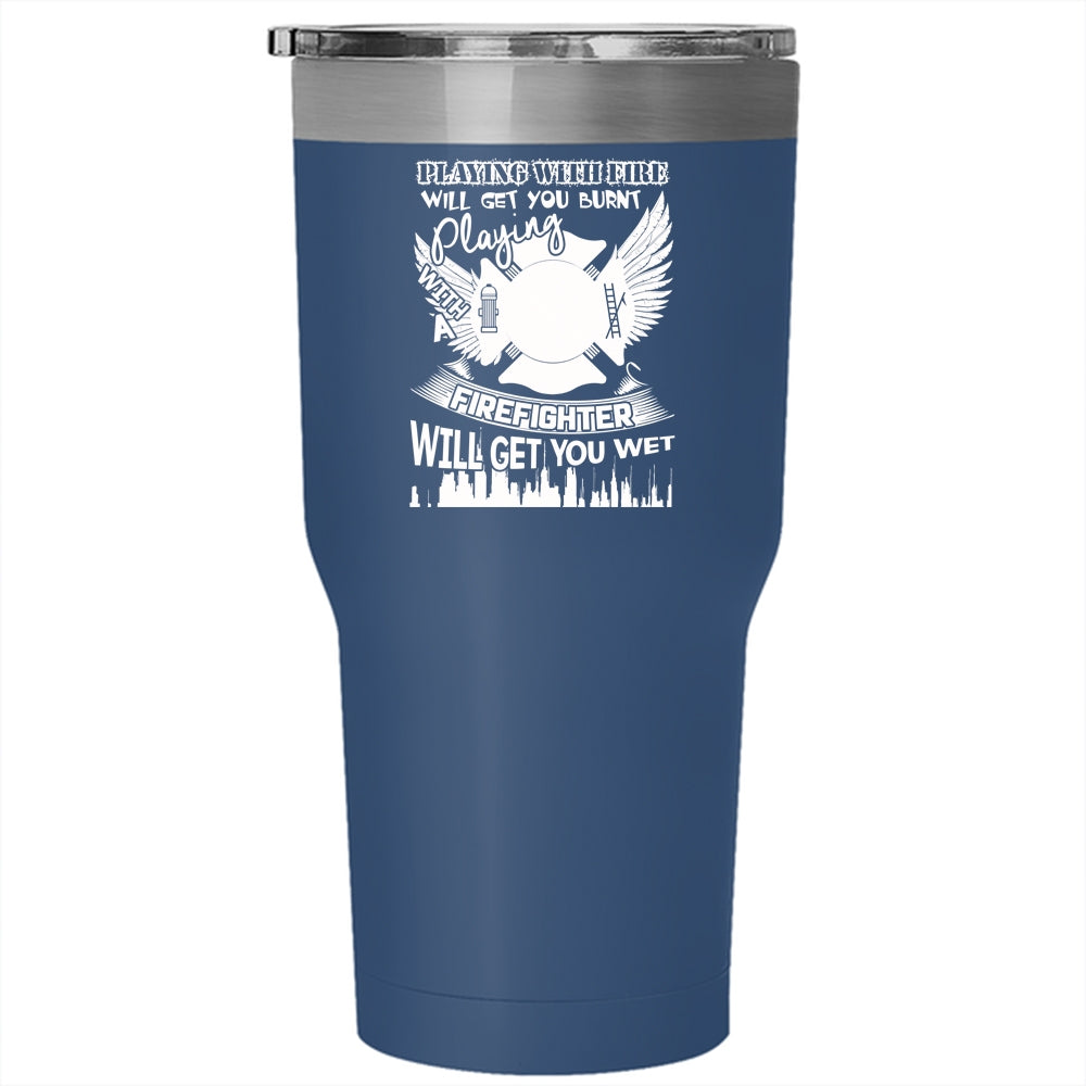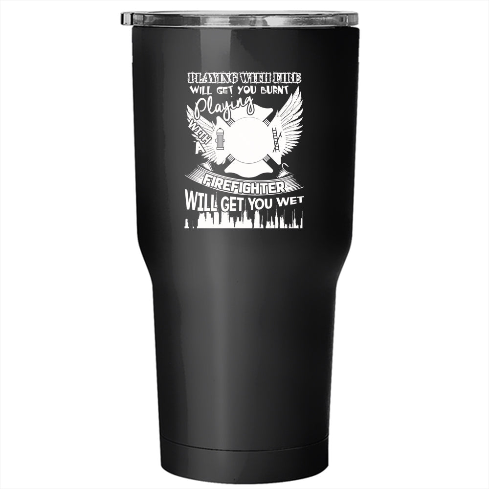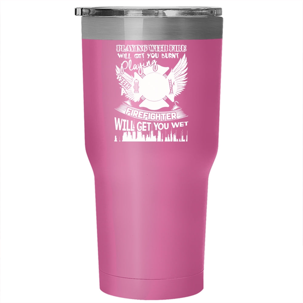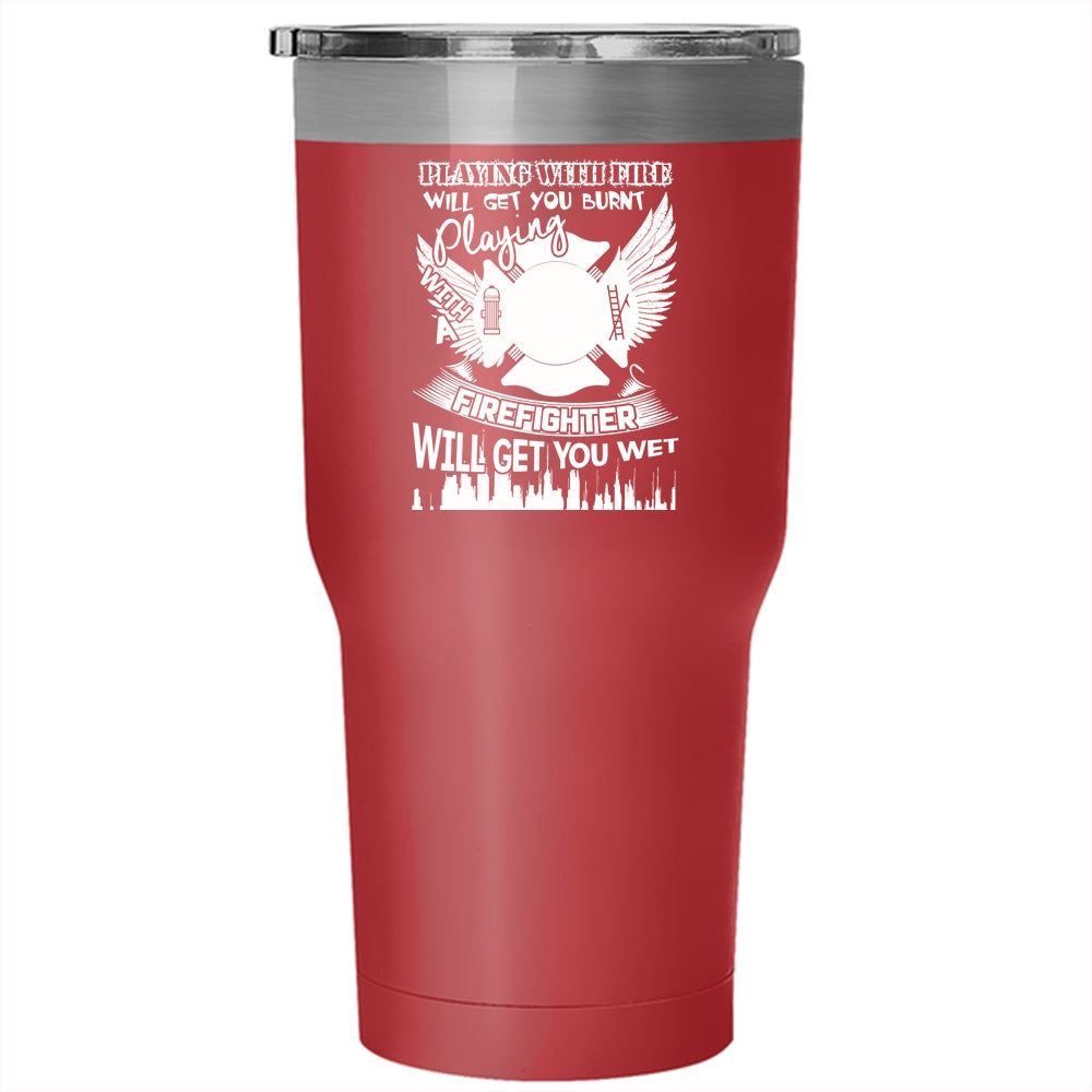 Playing With Fire Tumbler 30 oz Stainless Steel, Playing With A Firefighter Travel Mug