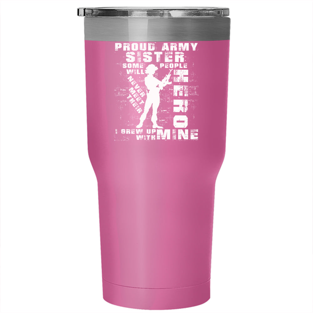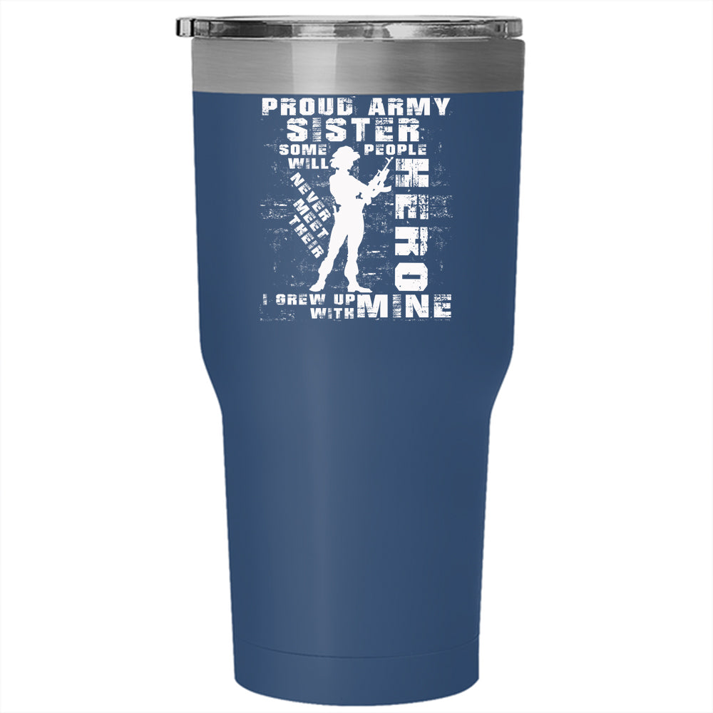 Proud Army Sister Tumbler 30 oz Stainless Steel, I Grew Up With My Sister Travel Mug